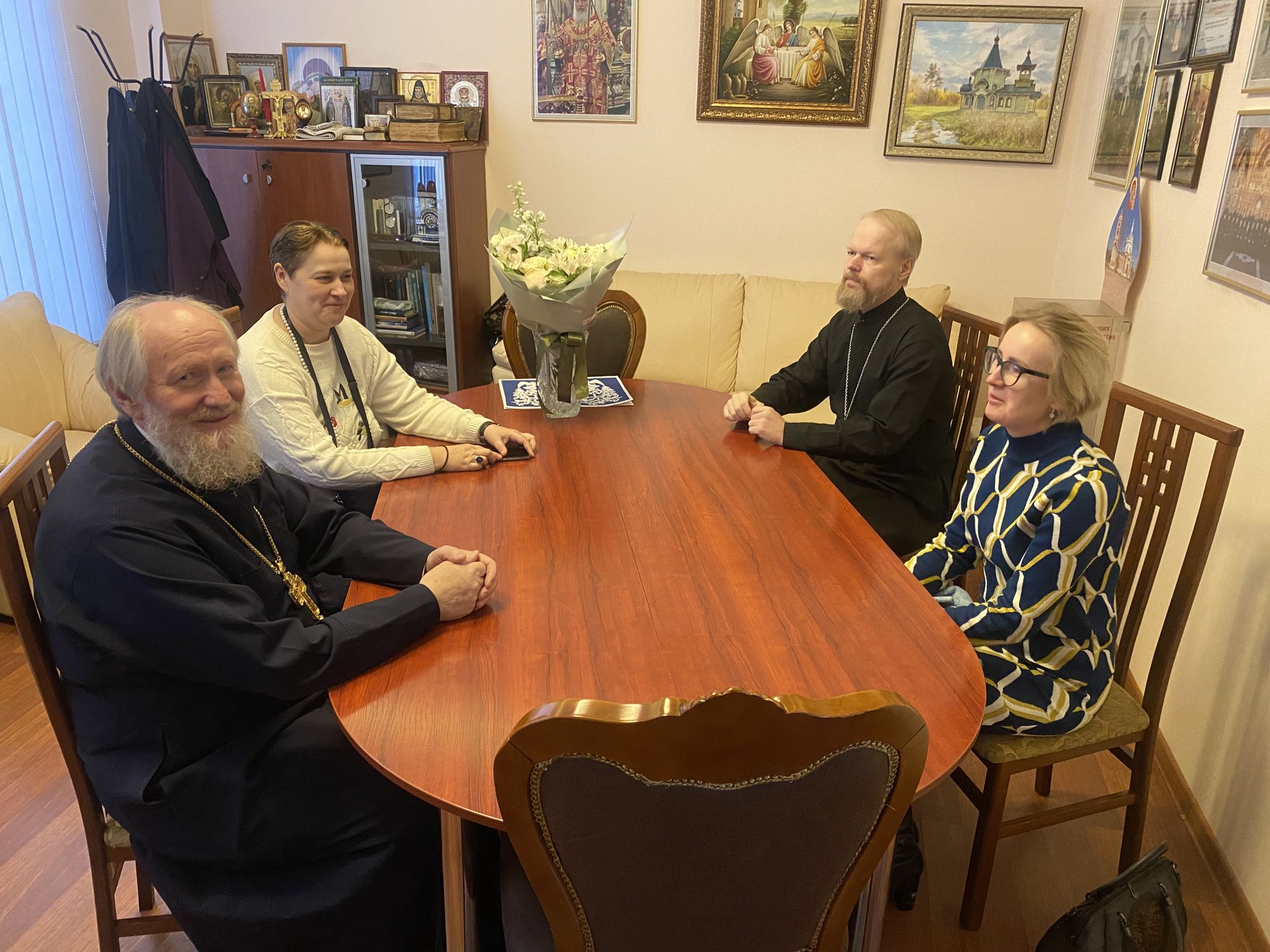 Во встрече приняли участие благочинный Щёлковского церковного округа протоиерей Андрей Ковальчук, руководитель штаба Комитета городского округа Щёлково Анна Игоревна Андреева, специалист сектора социальных коммуникаций «Информационного центра» г. Щёлково Светлана Сергеевна Туманова и ответственный в благочинии по вопросам семьи, защиты материнства и детства священник Димитрий Медведев. На собрании были рассмотрены возможные направления взаимодействия по поддержке семей участников СВО.