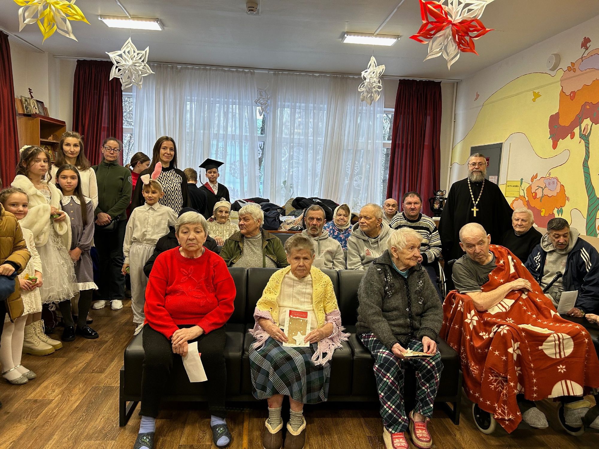 Воспитанники воскресной школы Троицкого храма г. Реутова посетили комплексный центр социального обслуживания и реабилитации «Балашихинский». Для персонала и жителей центра были исполнены рождественские музыкальные композиции и показан спектакль «Лето в зимнем лесу». Клирик прихода протоиерей Сергий Спицын обратился к присутствующим с поздравительным словом и раздал открытки, изготовленные воспитанниками воскресной школы Троицкого храма г. Реутова.