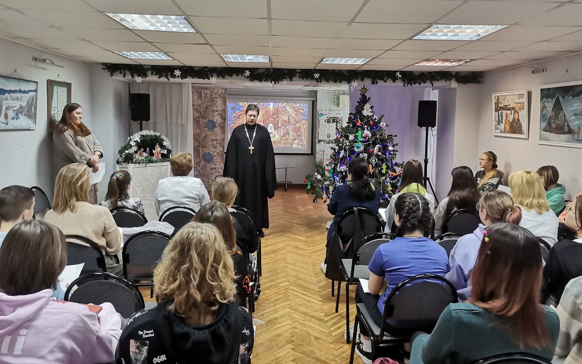 11 января в центре художественно-технического и инновационного развития микрорайона Павлино прошёл очный конкурс детских рисунков «Вифлеемская звезда». Клирик Троицкого храма деревни Павлино священник Артемий Филиппов обратился к участникам конкурса с поздравлением.