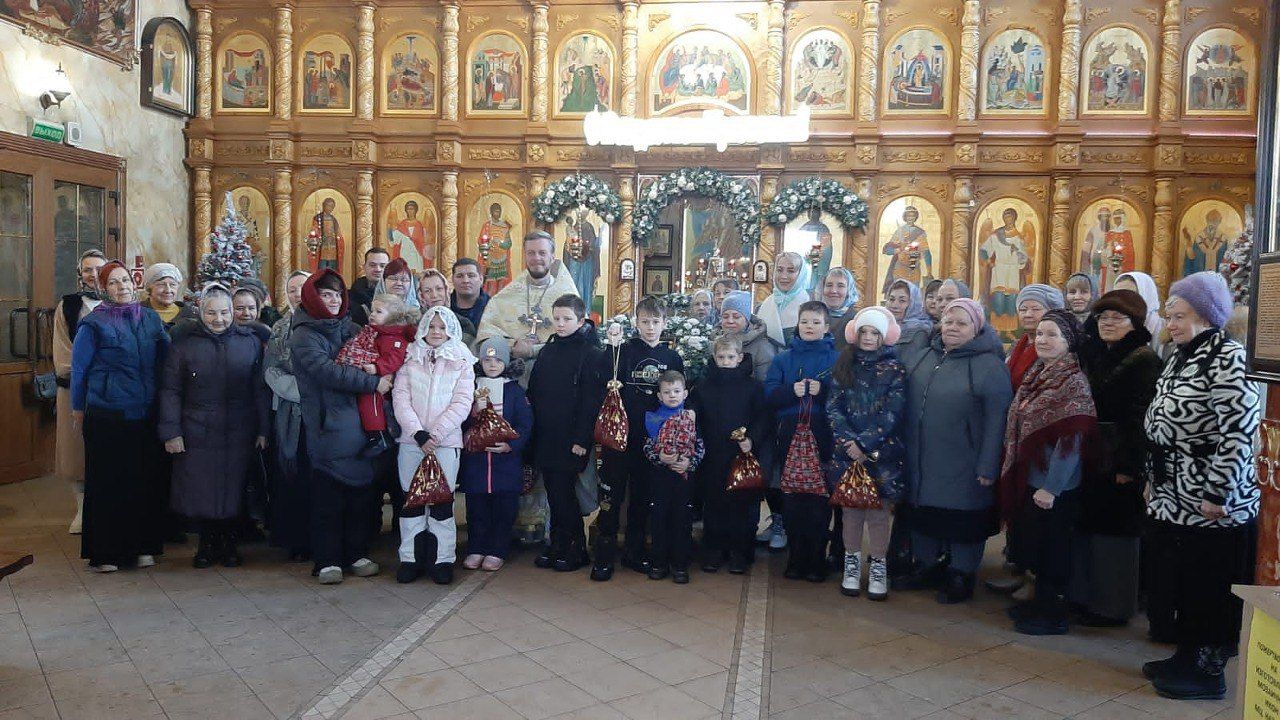 По приглашению настоятеля Георгиевского храма священника Димитрия Филина приход посетили получатели услуг учреждения «Добрый дом «Орехово-Зуевский». Отец Димитрий совершил праздничный молебен и поздравил ребят с Рождеством Христовым и Новолетием, рассказал о событиях праздника и пожелал доброго здравия. В завершение встречи ребята получили подарки.