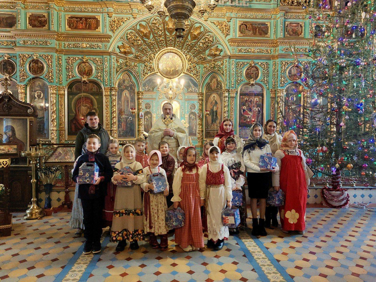 Воспитанники воскресной школы при Георгиевском храме Орехово-Зуева поздравили с праздником Рождества Христова прихожан храма. Ребята читали стихи и получили подарки от представителей коммунальных систем Московской области.