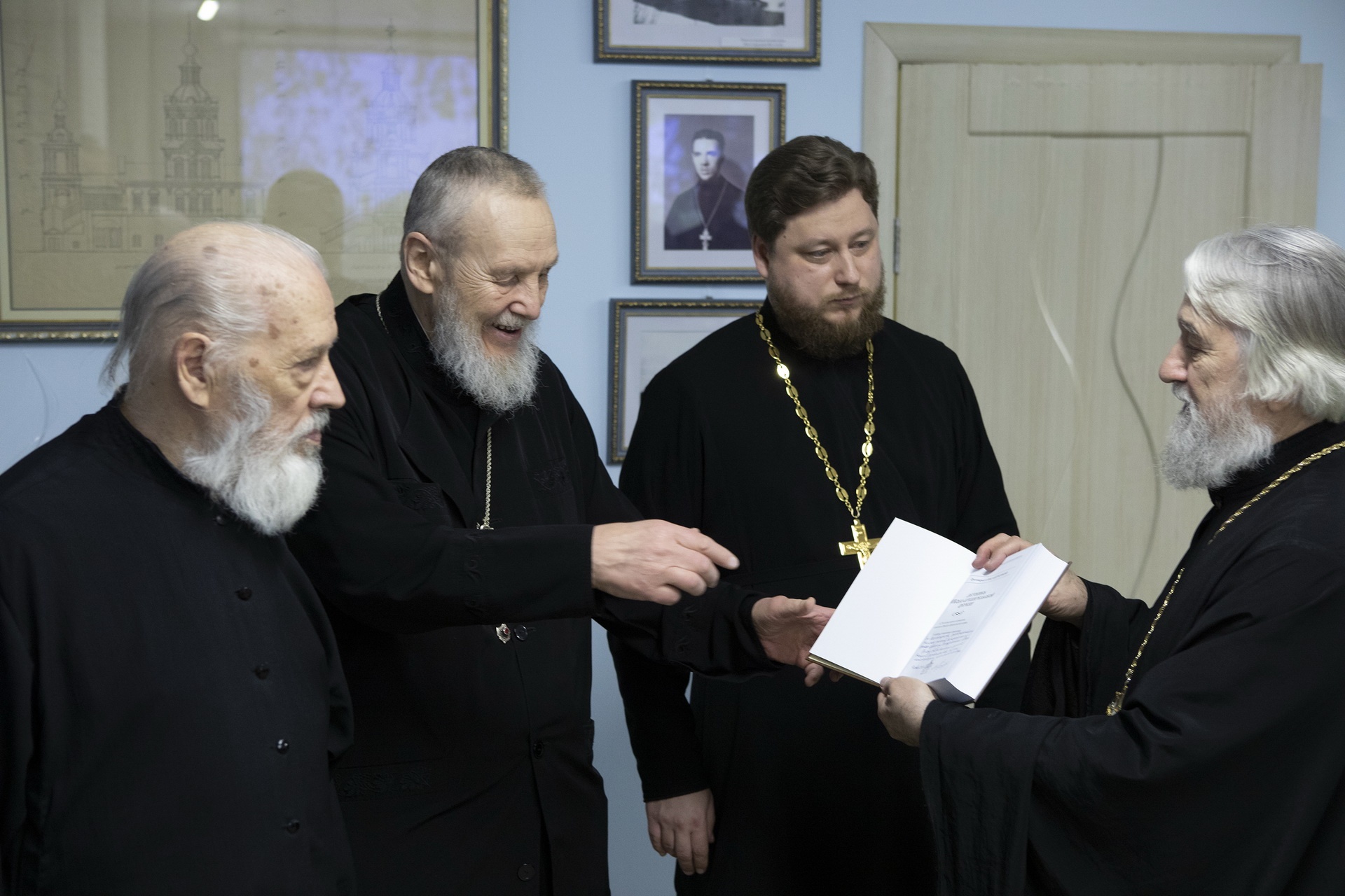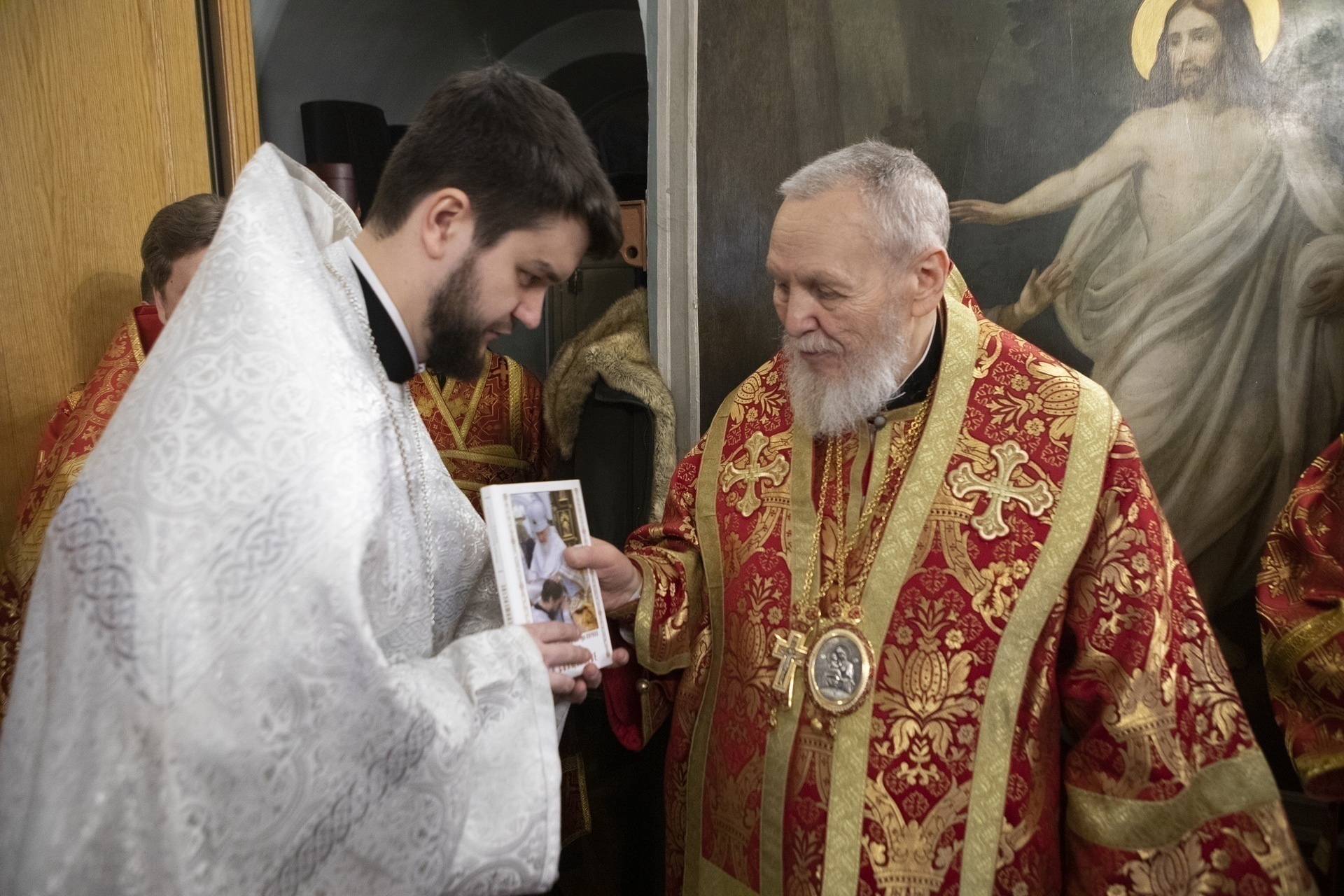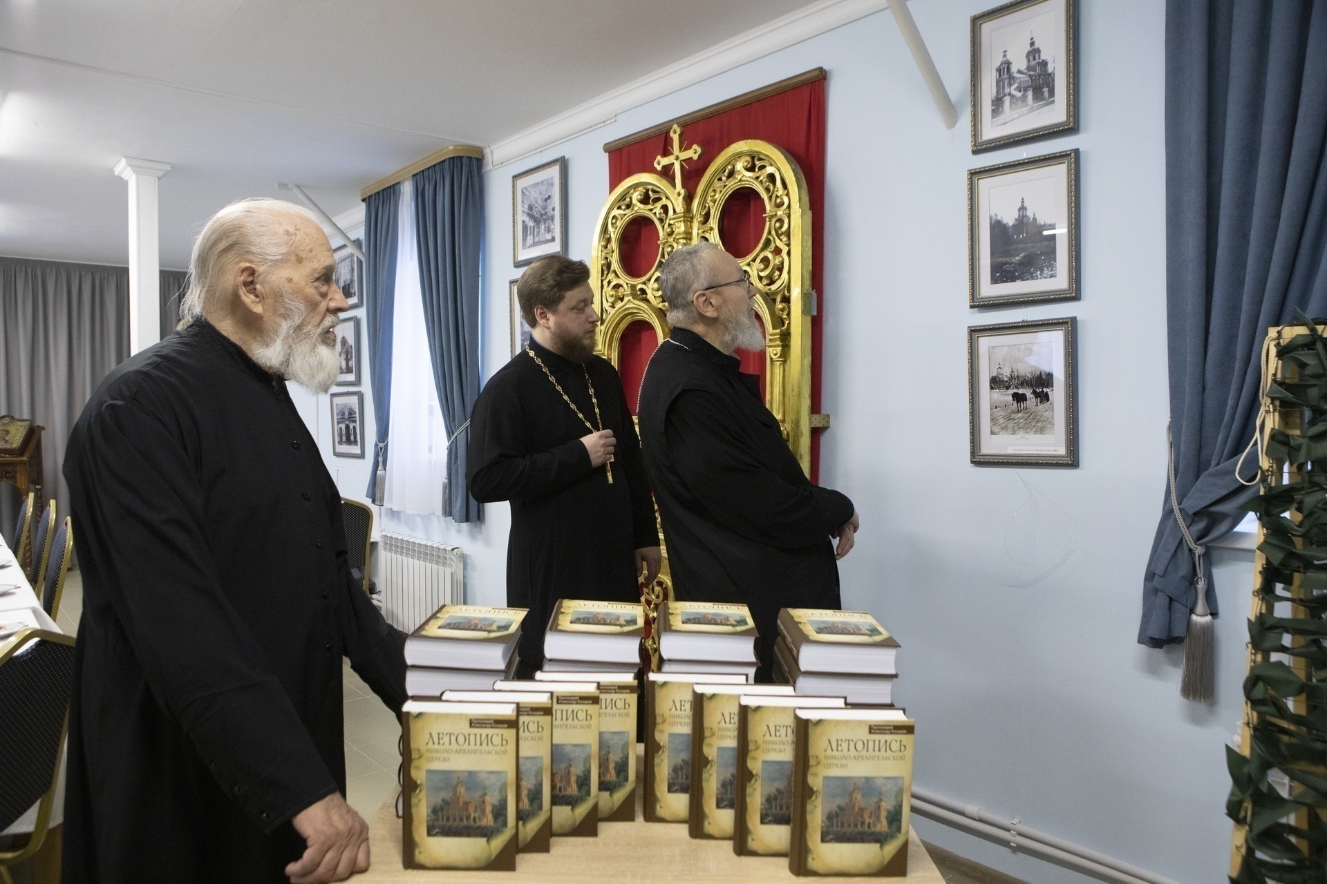 В этот же день в приходском доме Николо-Архангельского храма Владыка Николай осмотрел выставку, посвящённую истории прихода, принял участие в презентации книги авторства клирика храма протоиерея Александра Козырева «Летопись Николо-Архангельской церкви» и в просмотре фильма об истории прихода.