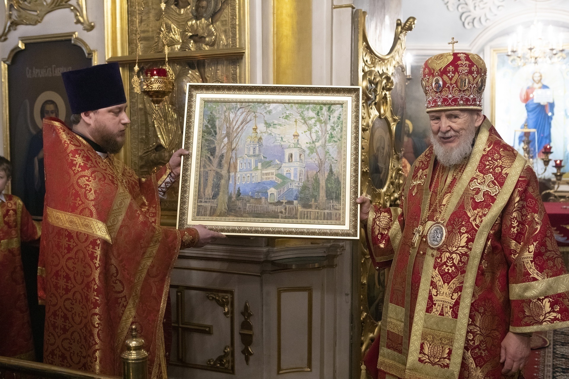 По окончании Литургии перед иконой новомучеников и исповедников Церкви Русской было совершено славление, после чего отец настоятель поблагодарил епископа Николая за совершённое богослужение и преподнёс ему картину с изображением Николо-Архангельского храма, написанную одним из прихожан.