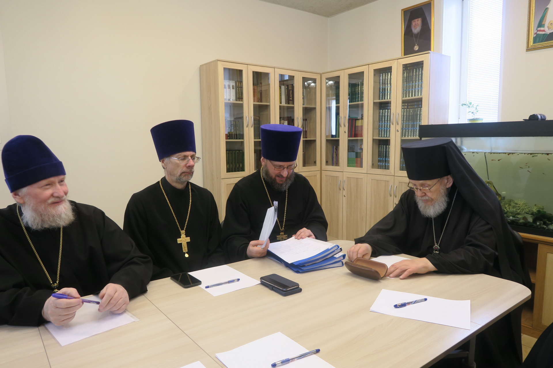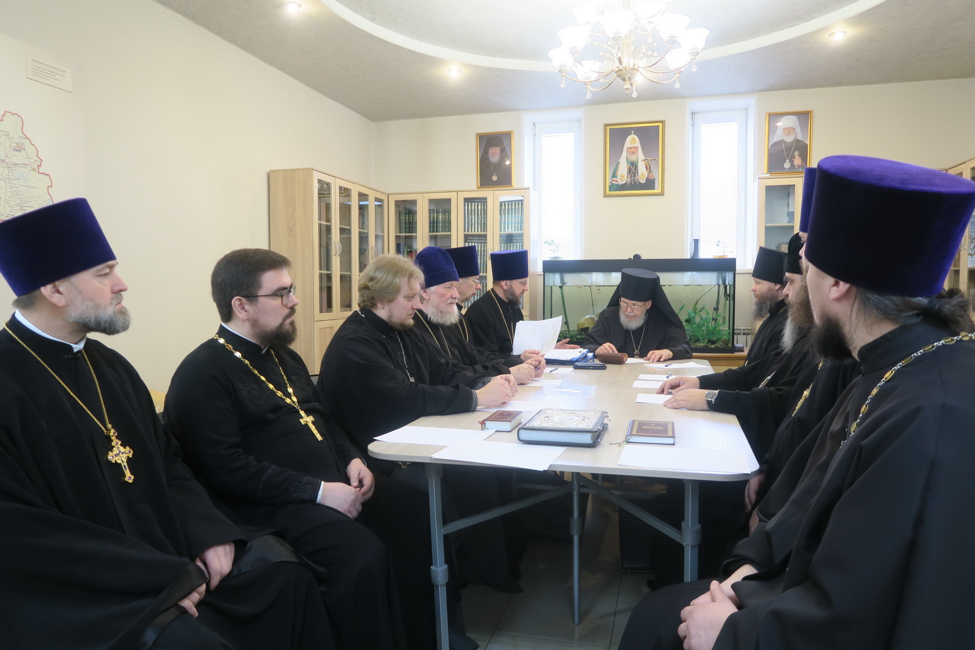 Были рассмотрены кандидатуры ставленников во пресвитера и во диакона, обсуждались вопросы организации епархиальных мероприятий в текущем году, а также епархиальных мероприятий в 2025 году, посвящённых 100-летию со дня преставления Святейшего Патриарха Тихона.