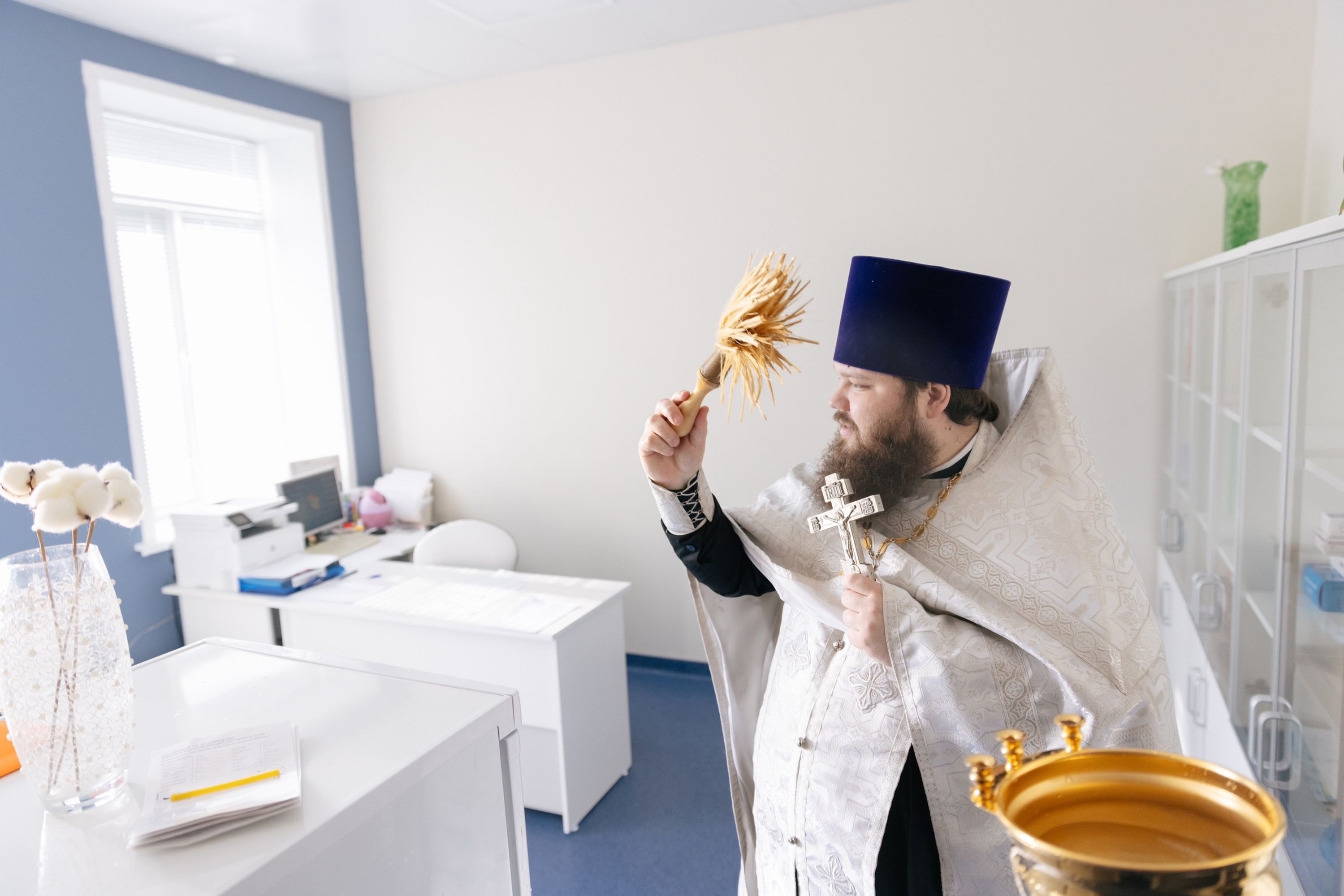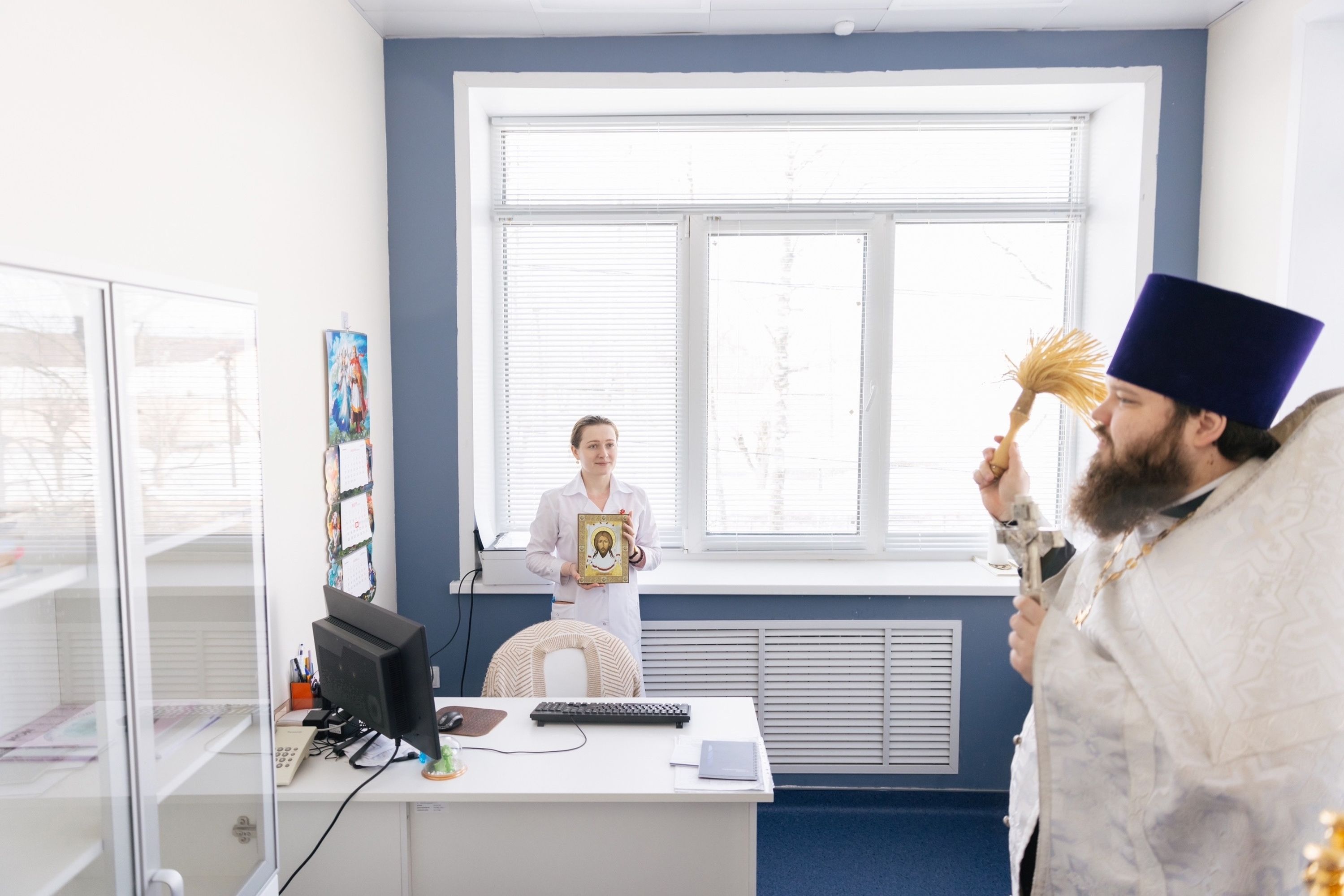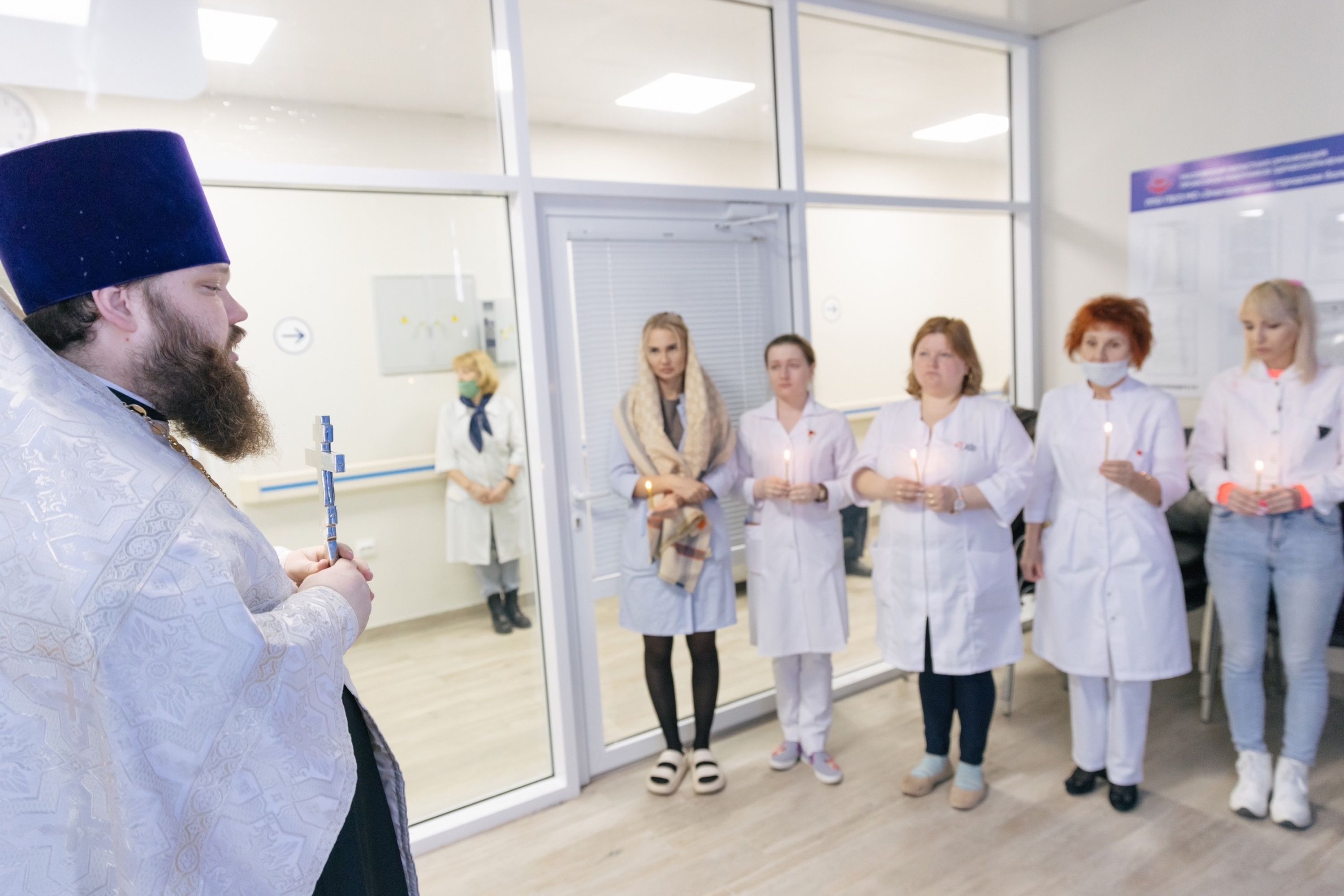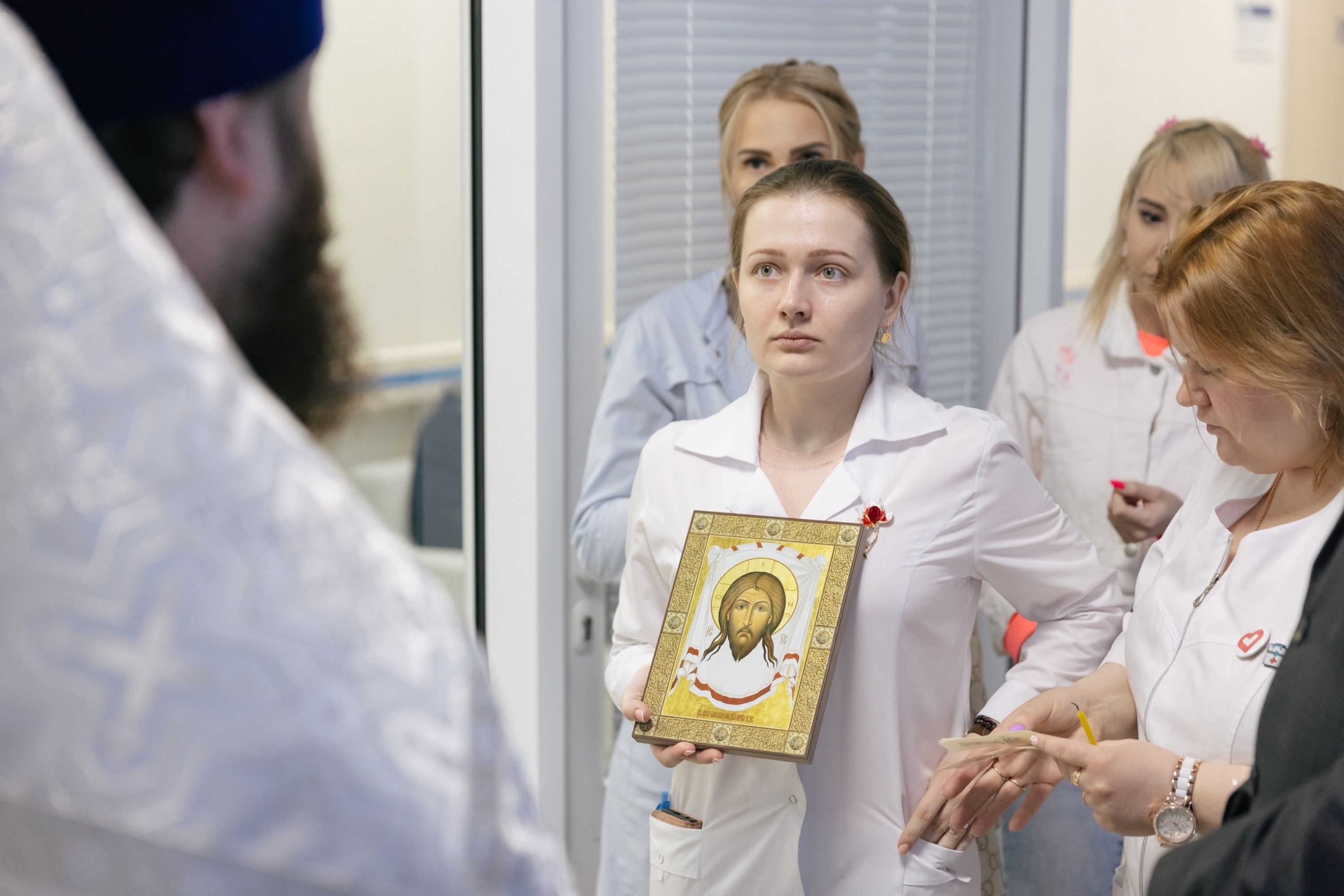 По окончании богослужения отец Александр обратился к коллективу учреждения с приветственным словом и передал главному врачу учреждения Н. М. Суворову в благословение Нерукотворный образ Спасителя.