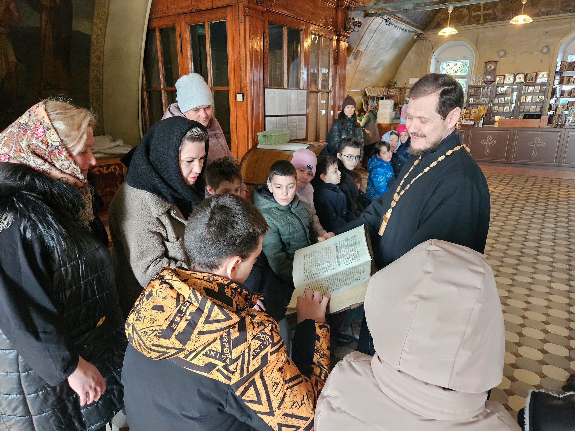 15 марта в Богородицерождественском храме посёлка Образцово настоятель священник Димитрий Выдумкин провёл беседу с учащимися 5 и 6 классов Краснознаменской школы. Батюшка рассказал об истории книгопечатания в Европе и на Руси, показал гостям книги издания XVIII века, сохранившиеся в библиотеке прихода со времен построения храма.
