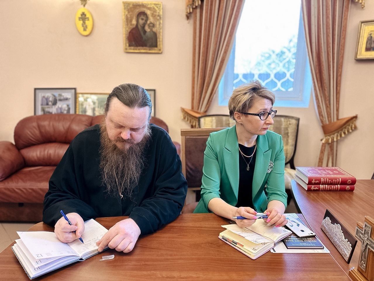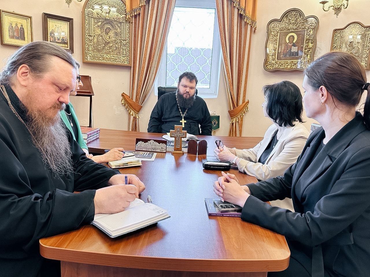 В ходе встречи обсуждались вопросы подготовки совместных мероприятий, приуроченных к празднованию Дня православной книги в округе и другие вопросы сотрудничества. Отец благочинный вручил участникам встречи книгу Святейшего Патриарха Кирилла «Чтобы пост был во спасение…»