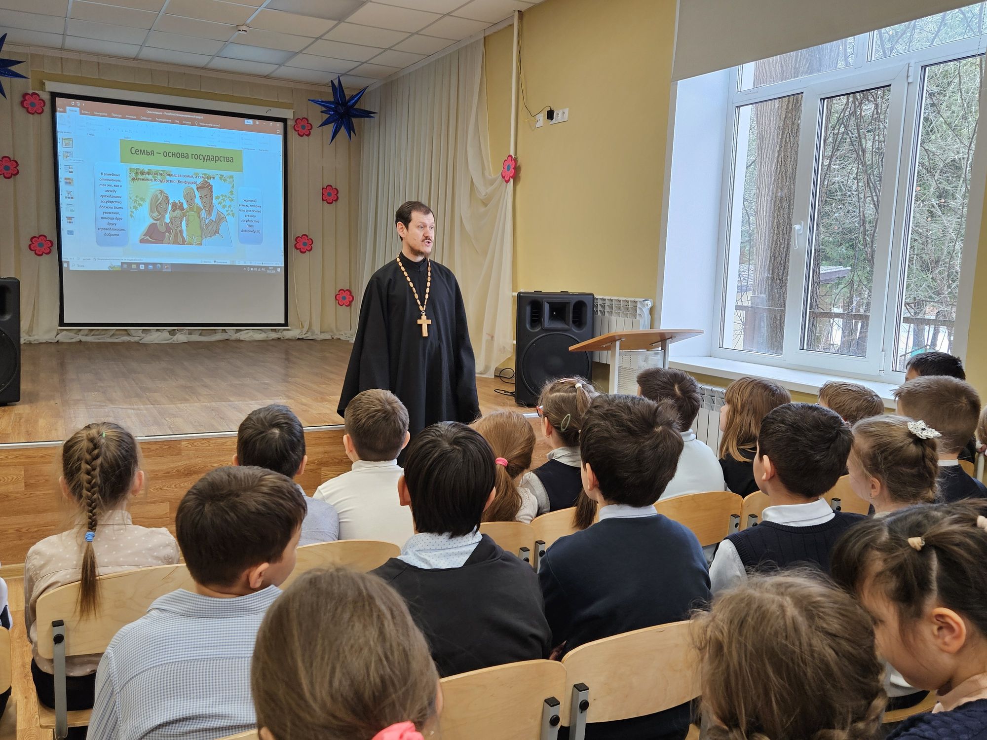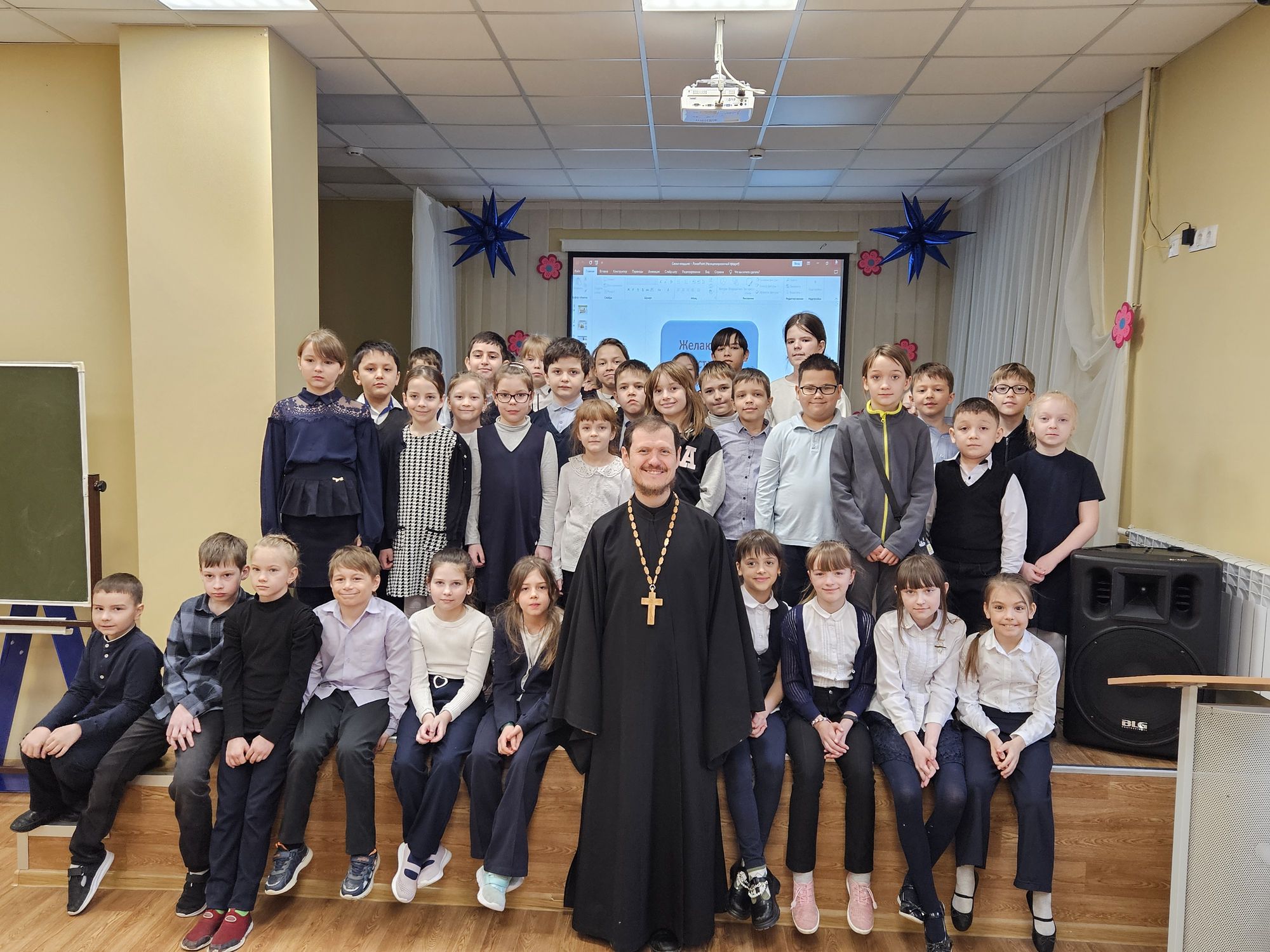 29 марта в школе № 20 городского округа Щёлково посёлка Краснознаменский состоялась беседа настоятеля Богородицерождественского храма посёлка Образцово священника Димитрия Выдумкина с учащимися 2-3 классов.