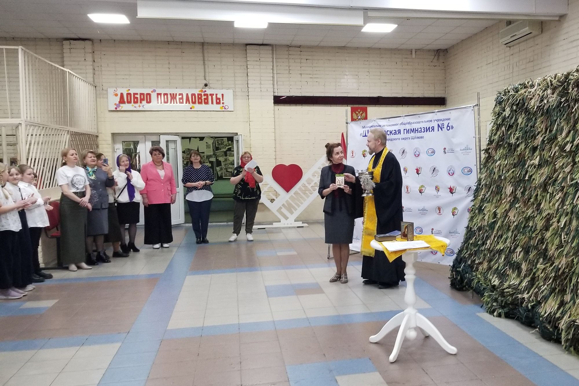 19 апреля ответственный в Щёлковском благочинии по вопросам семьи, защиты материнства и детства священник Димитрий Медведев посетил Щёлковскую гимназию №6 и совершил освящение маскировочной сети, изготовленной для нужд Специальной военной операции силами учащихся.