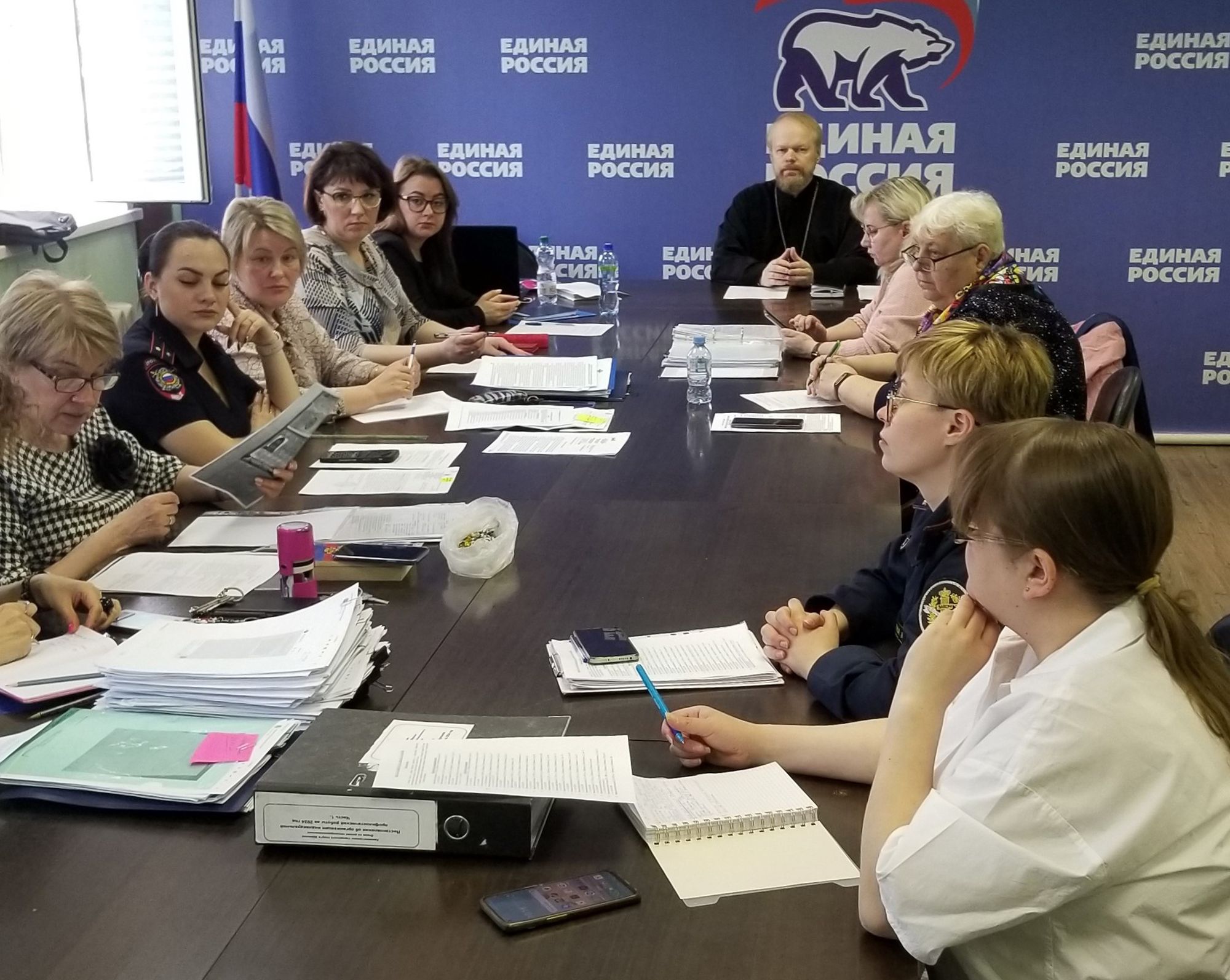 По приглашению заместителя председателя Комиссии, начальника Отдела по делам несовершеннолетних администрации городского округа Щёлково Татьяны Борисовны Васильевой на заседании присутствовал ответственный в Щёлковском благочинии по вопросам семьи, защиты материнства и детства священник Димитрий Медведев.