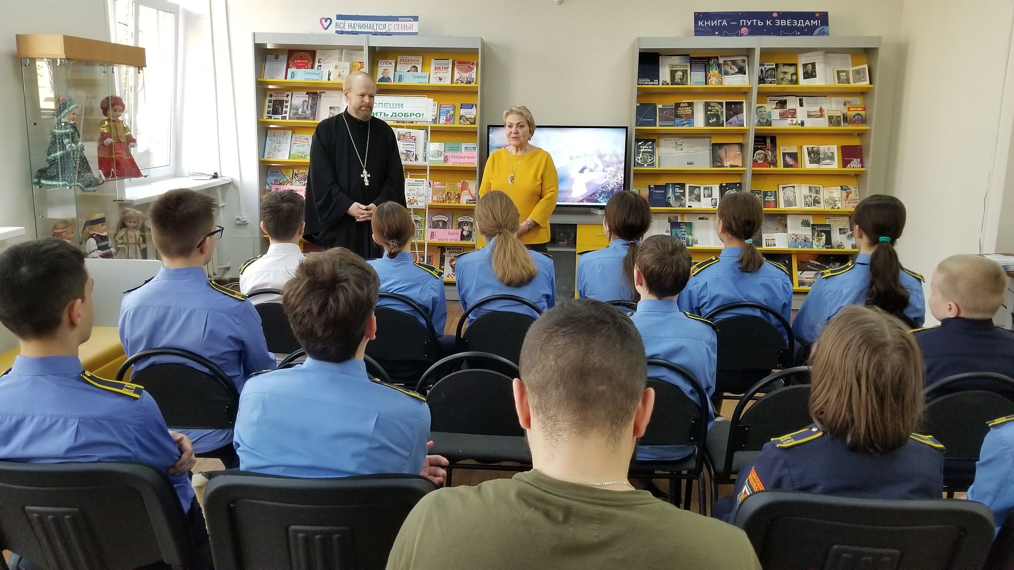 24 апреля в Щёлковской библиотеке №1 состоялась встреча учащихся седьмого инженерно-кадетского класса школы №17 с представителем уполномоченного по правам человека в Московской области по городским округам Щёлково и Фрязино В. П. Евтушенко и ответственным в Щёлковском благочинии по вопросам семьи, защиты материнства и детства священником Димитрием Медведевым, посвящённая толерантности. Батюшка рассказал школьникам о христианском понимании терпимости.