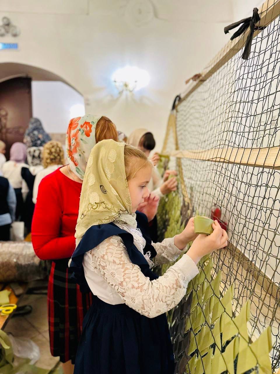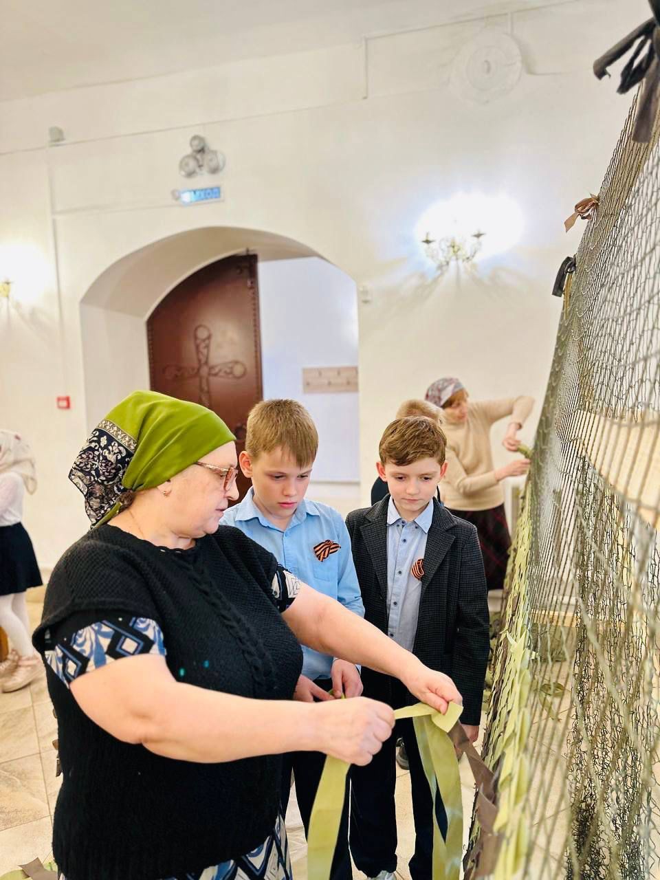 Настоятель храма, благочинный церквей Павлово-Посадского округа священник Александр Анохин ознакомил детей с историей храма, каждый ученик смог попробовать себя в плетении маскировочных сетей для нужд СВО в мастерской.