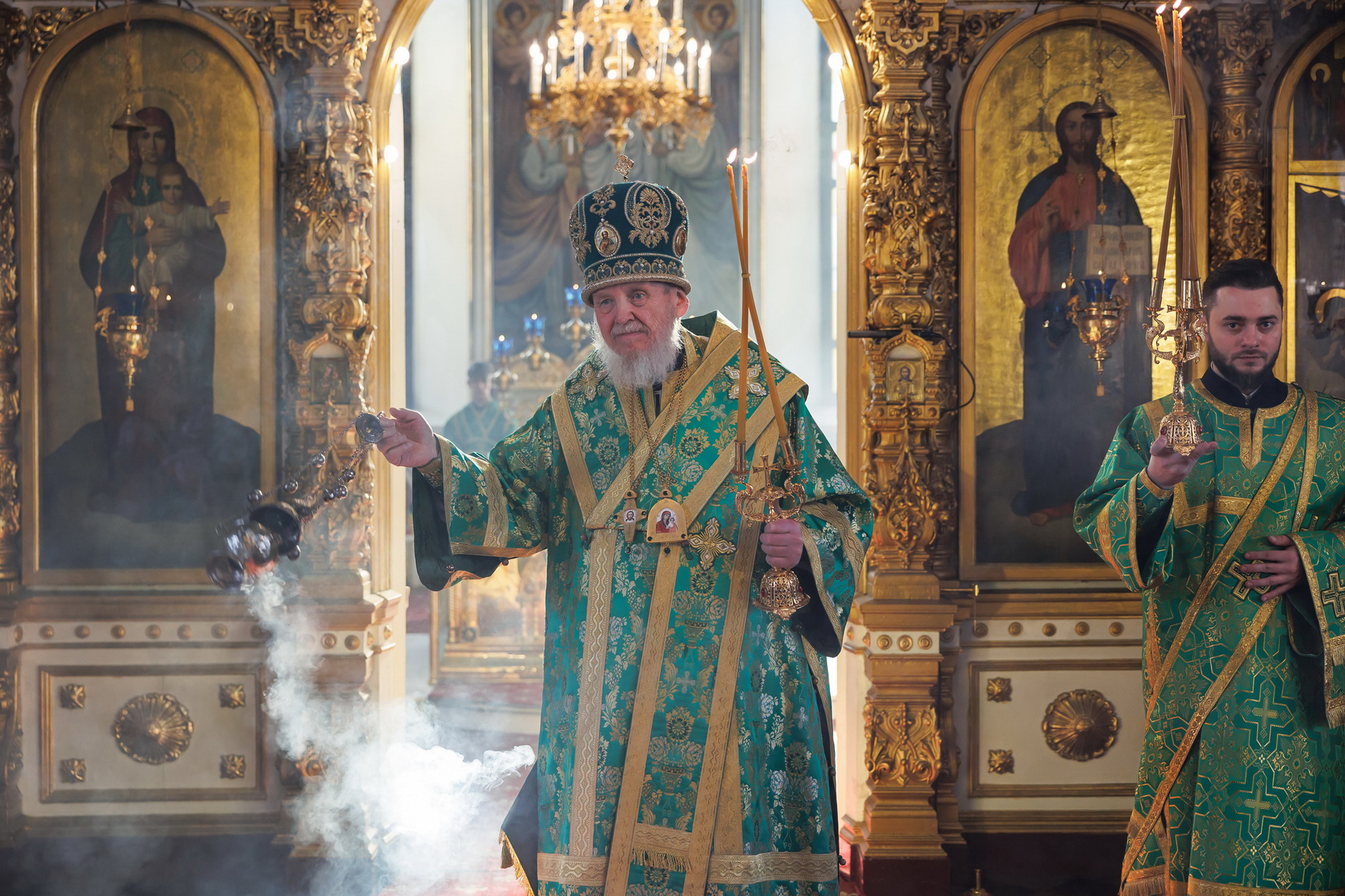 Его Преосвященству сослужили благочинный Орехово-Зуевского церковного округа протоиерей Андрей Коробков и клирики собора.