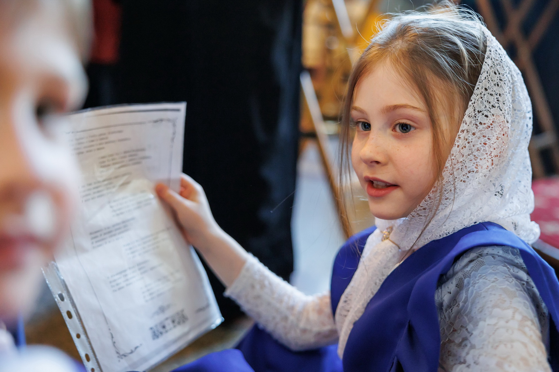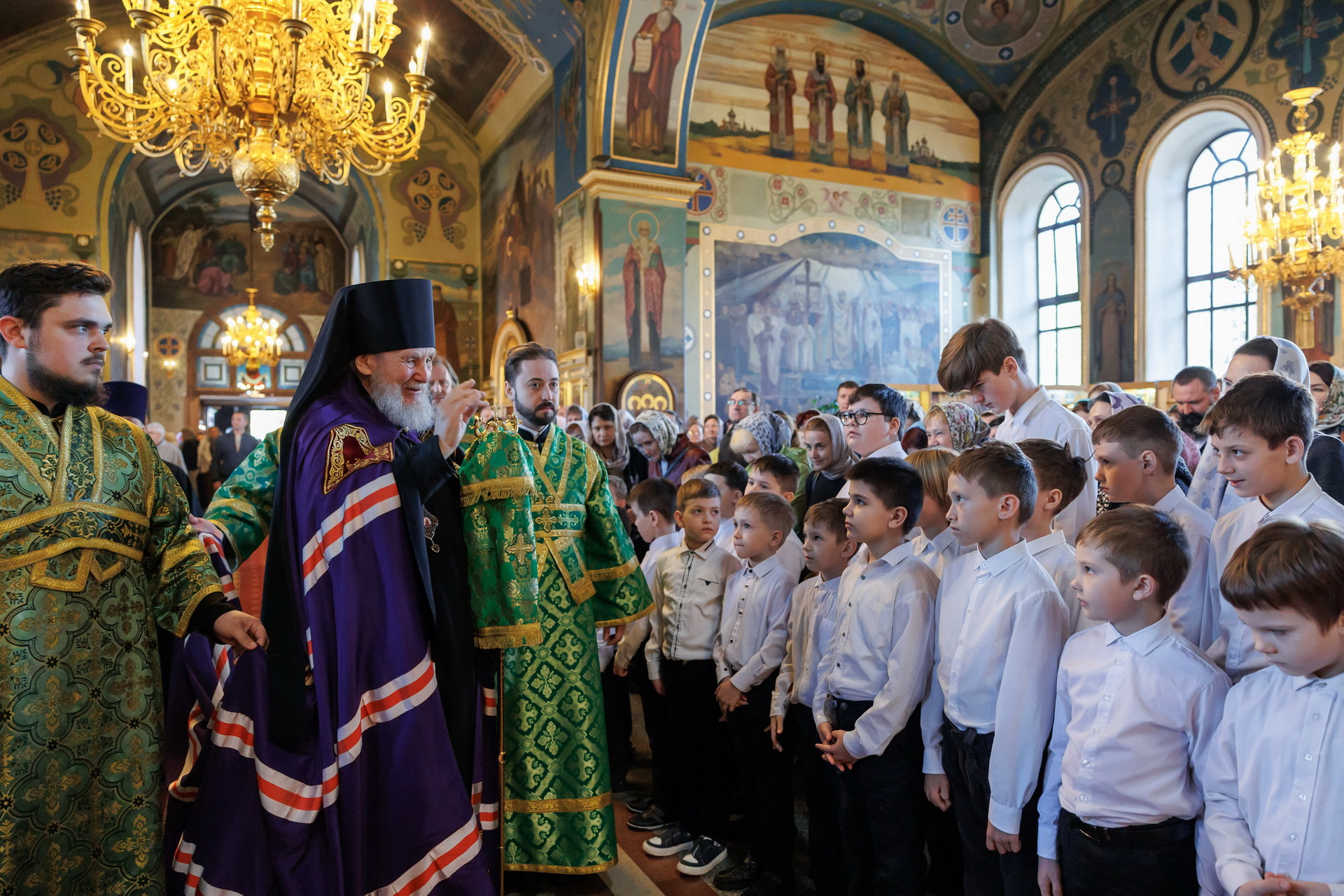 Перед началом Литургии епископ Николай освятил певческие облачения для приходского детского хора.