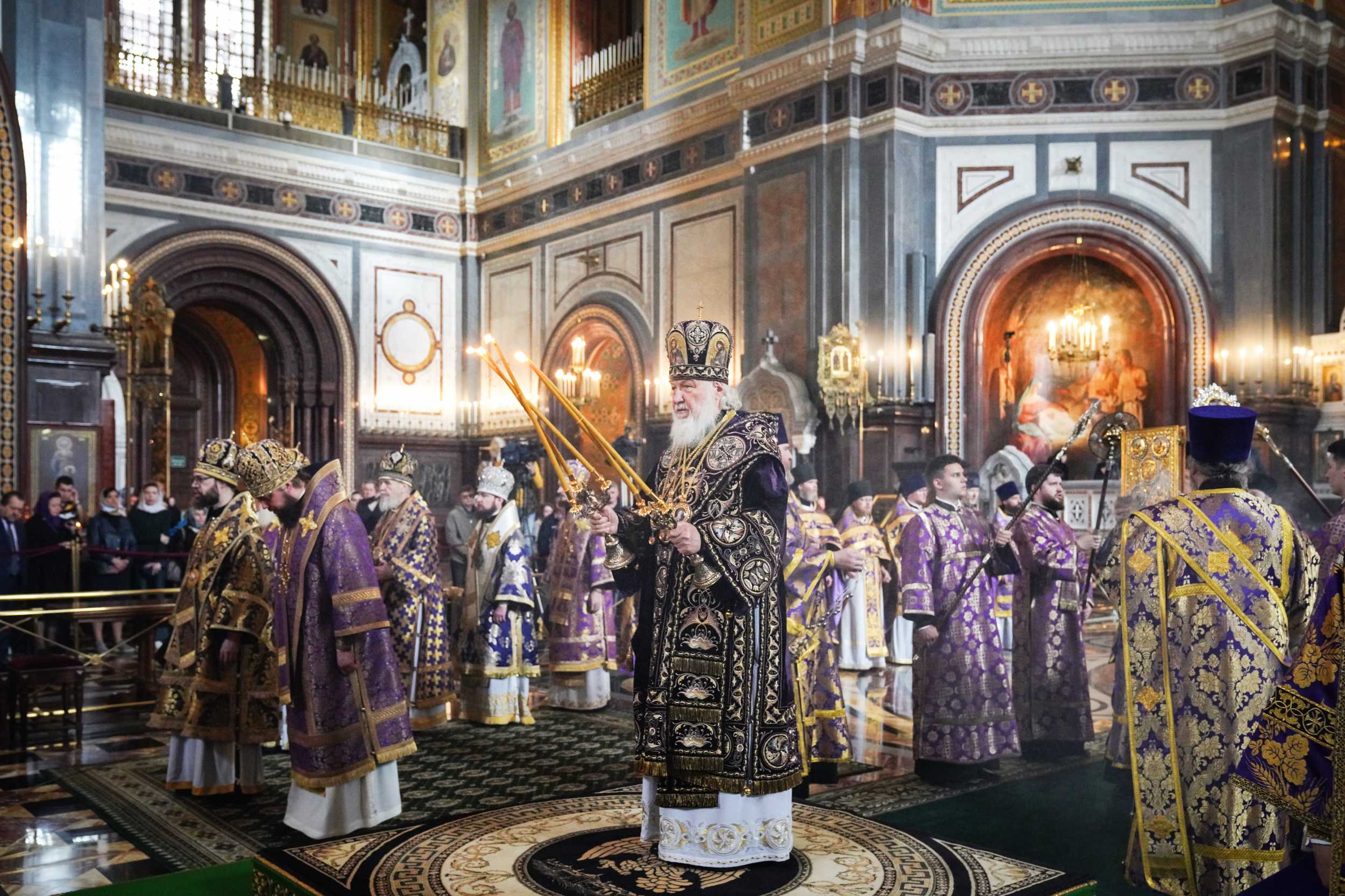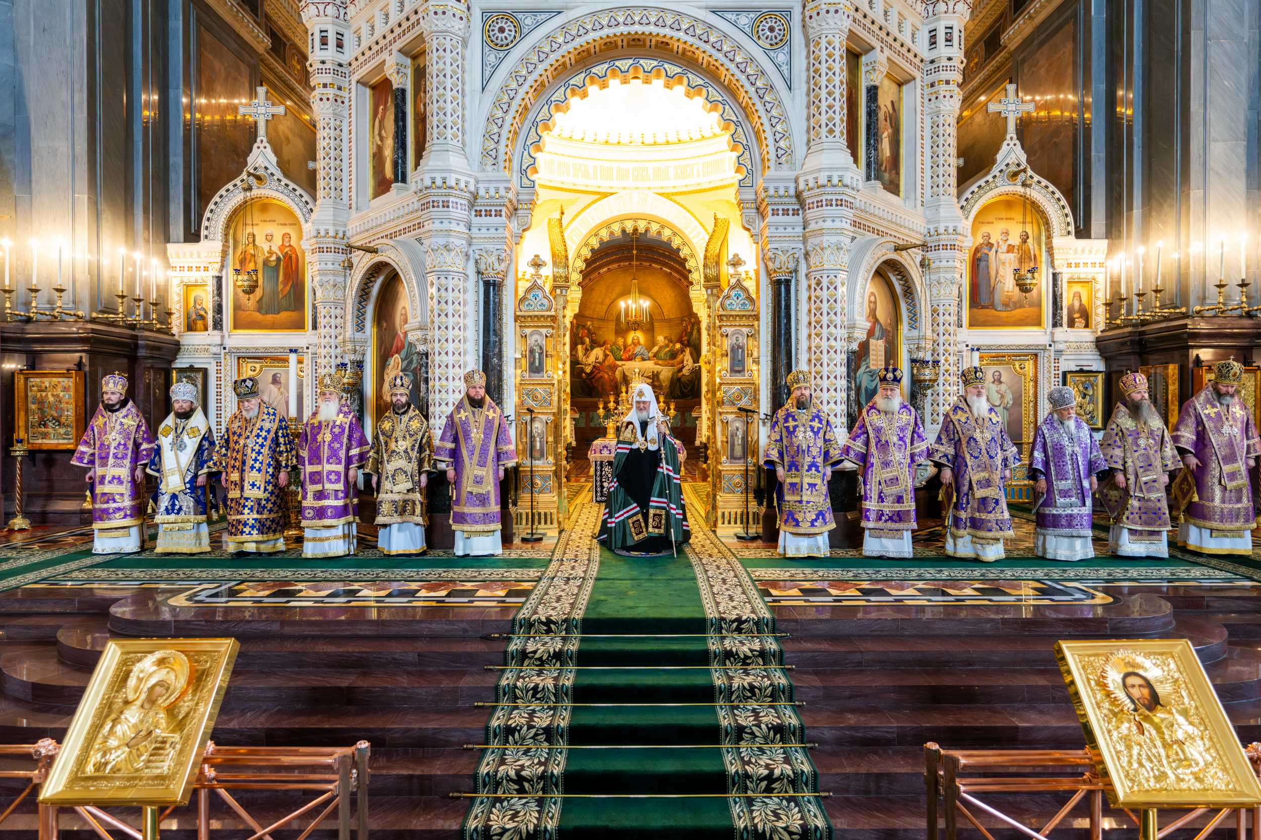 На сугубой ектении были вознесены особые прошения, Предстоятель Русской Православной Церкви прочитал молитву о Святой Руси.