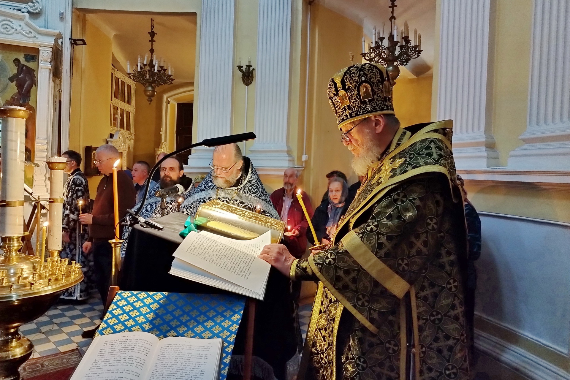 Его Преосвященству сослужили клирики собора.