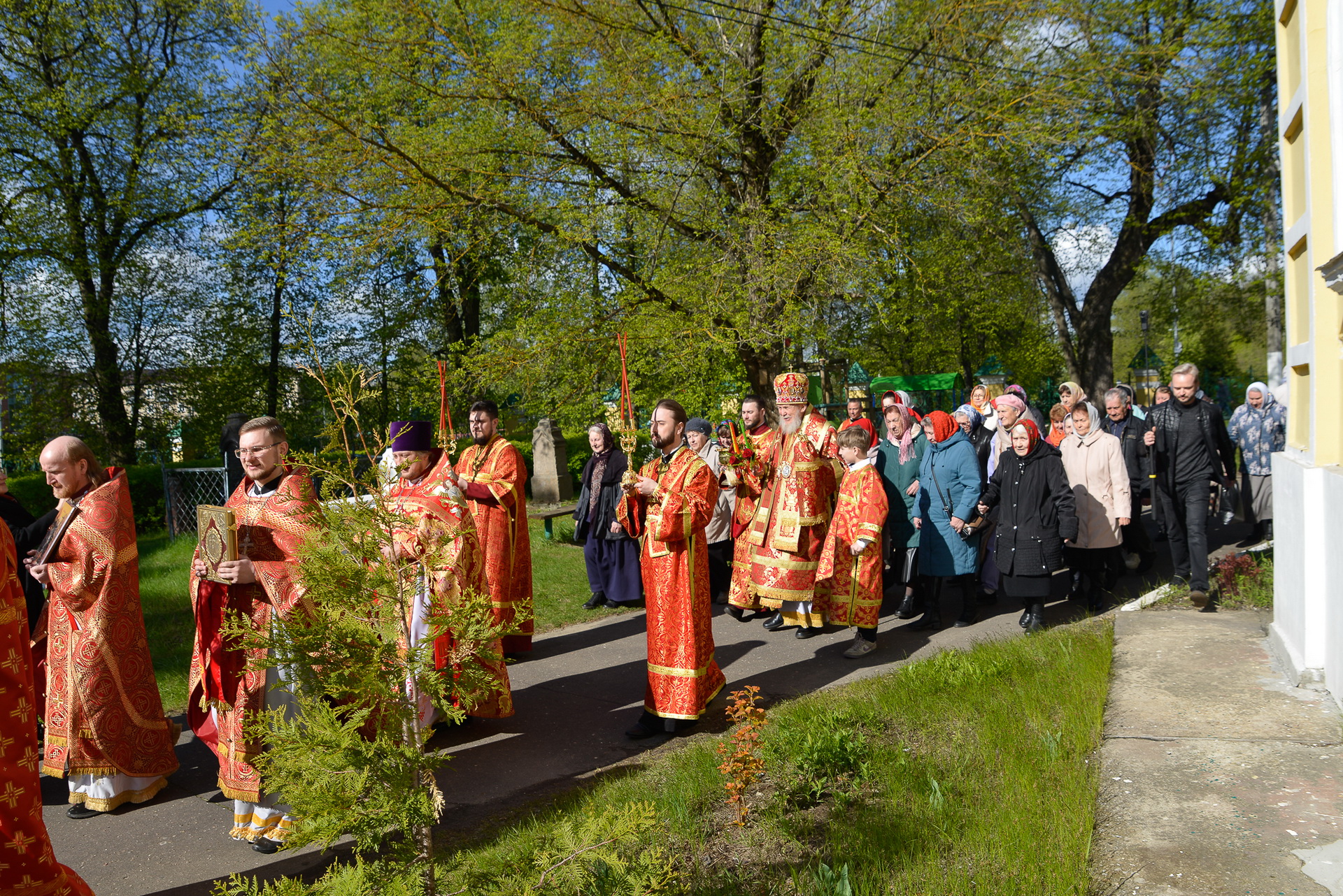 По окончании Литургии был совершён пасхальный крестный ход и возглашены уставные многолетия, после чего отец благочинный поблагодарил Владыку Николая за совершённое богослужение и преподнёс ему прижизненный портрет святителя Тихона, Патриарха Московского и всея Руси.