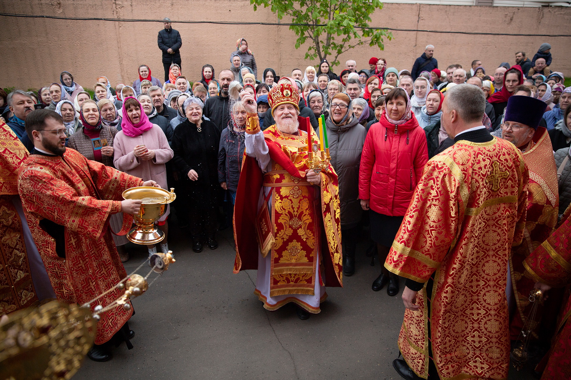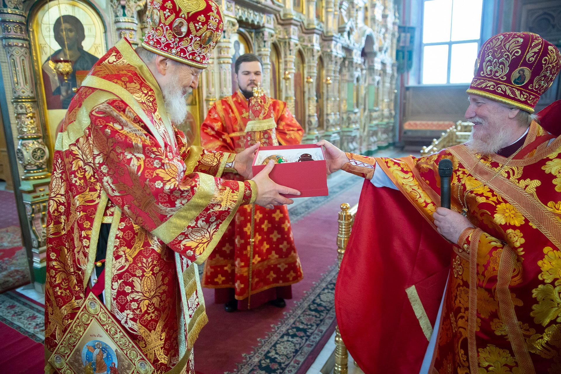 По окончании Литургии был совершён крестный ход, после чего отец благочинный поблагодарил Владыку Николая за совершённое богослужение и преподнёс ему пасхальное яйцо.
