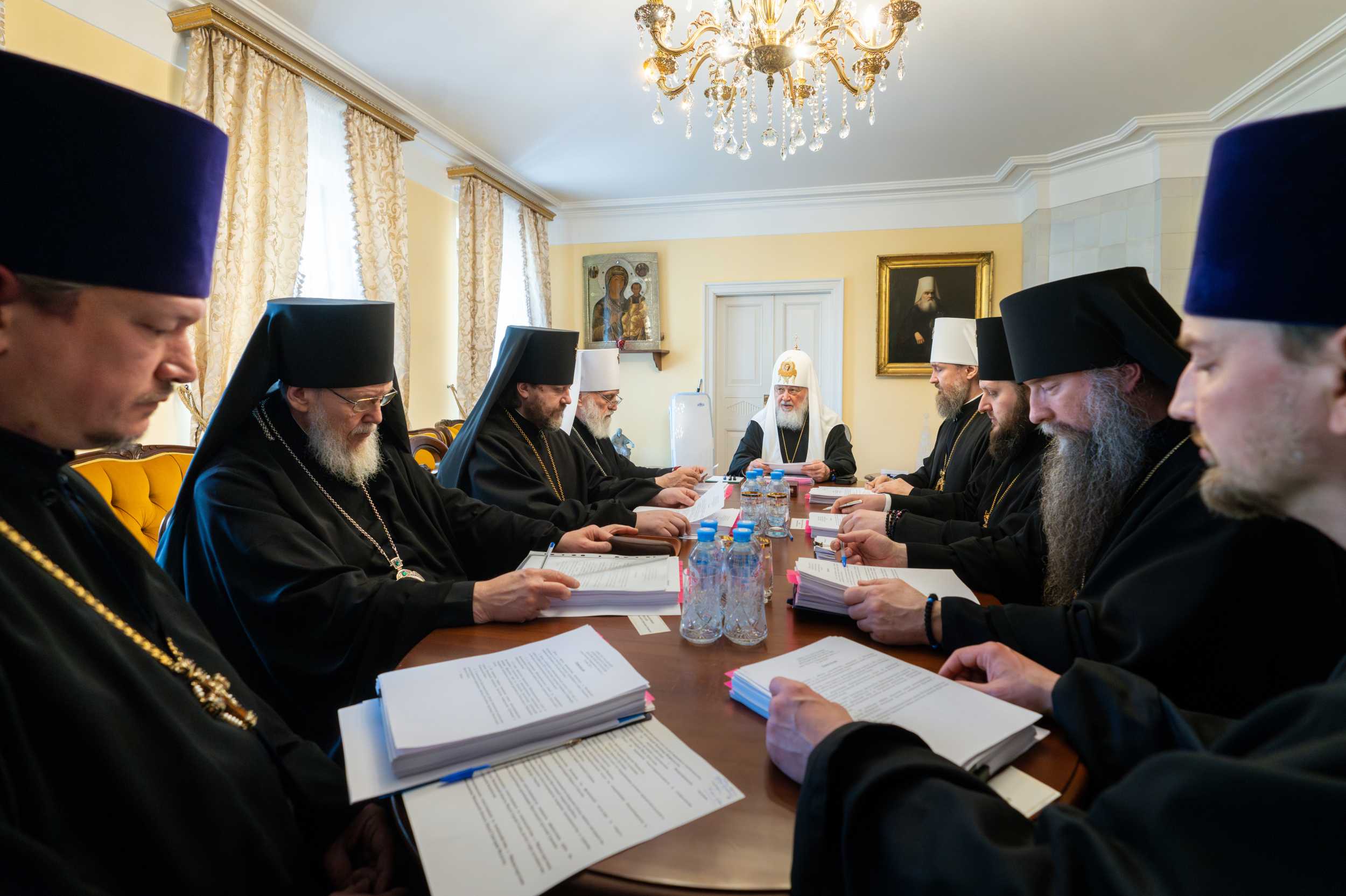 Под председательством Его Святейшества в Патриаршей резиденции главы Московской митрополии в Новодевичьем монастыре состоялось очередное заседание Архиерейского совета Московской митрополии.