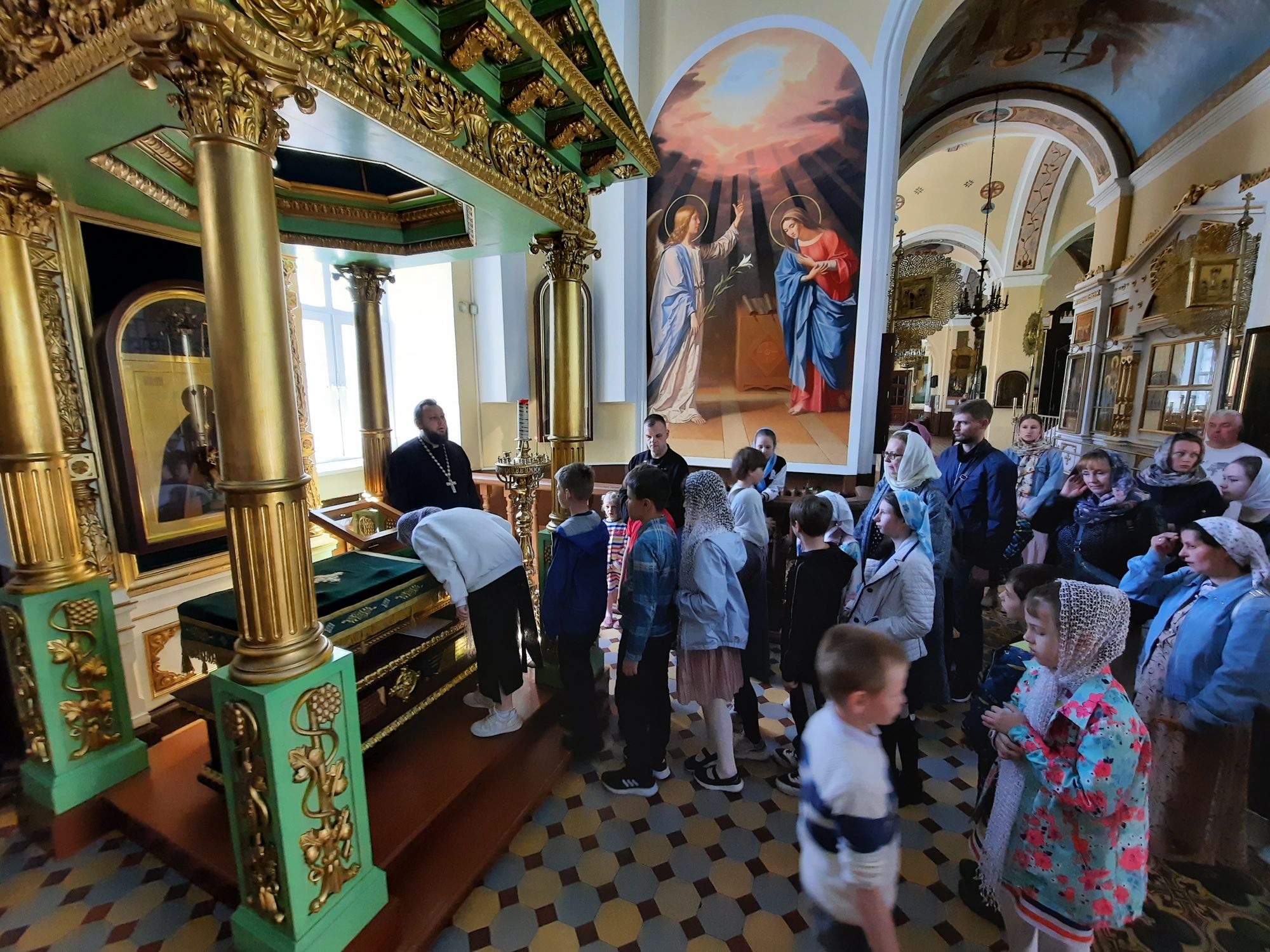 После молебного пения перед Кипрской Стромынской иконой Божией Матери и честными мощами преподобного Саввы Стромынского богомольцы поклонились храмовым святыням.