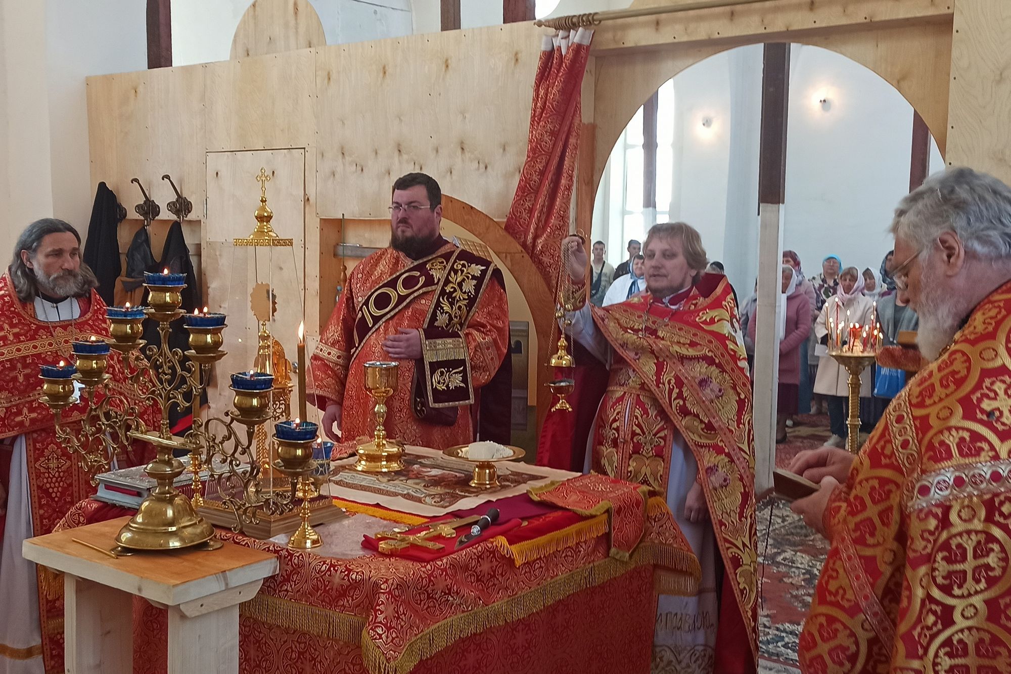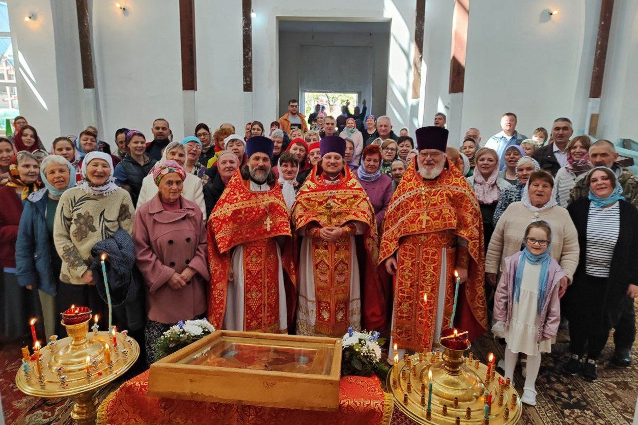 По окончании Литургии был совершён крестный ход и возглашены уставные многолетия, после чего отец благочинный подарил храму иконы святителя Николая Чудотворца и Божией Матери «Семистрельная».