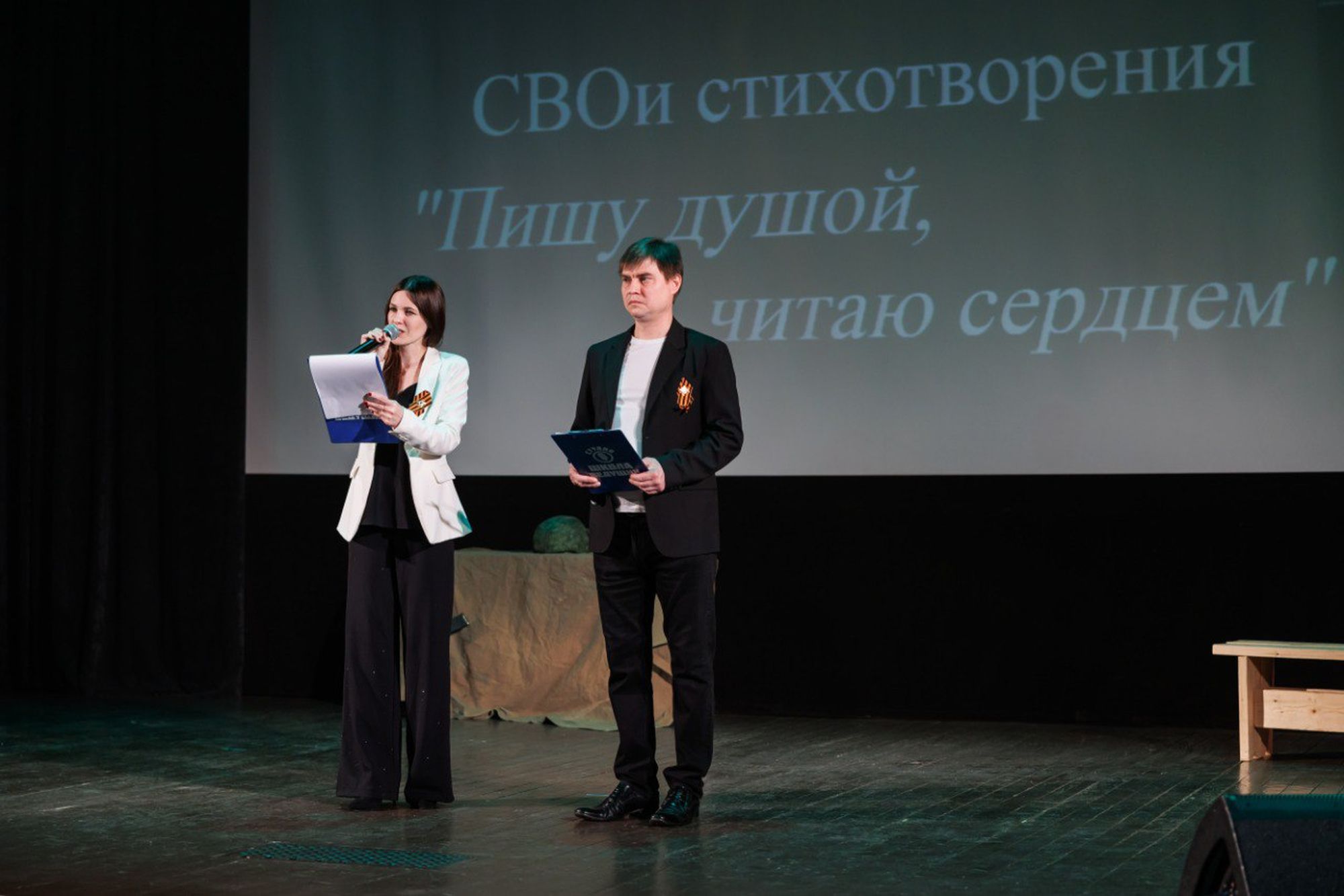 На сцене участники Специальной военной операции и члены их семей, волонтёры и жителя Подмосковья прочитали стихотворения собственного сочинения.