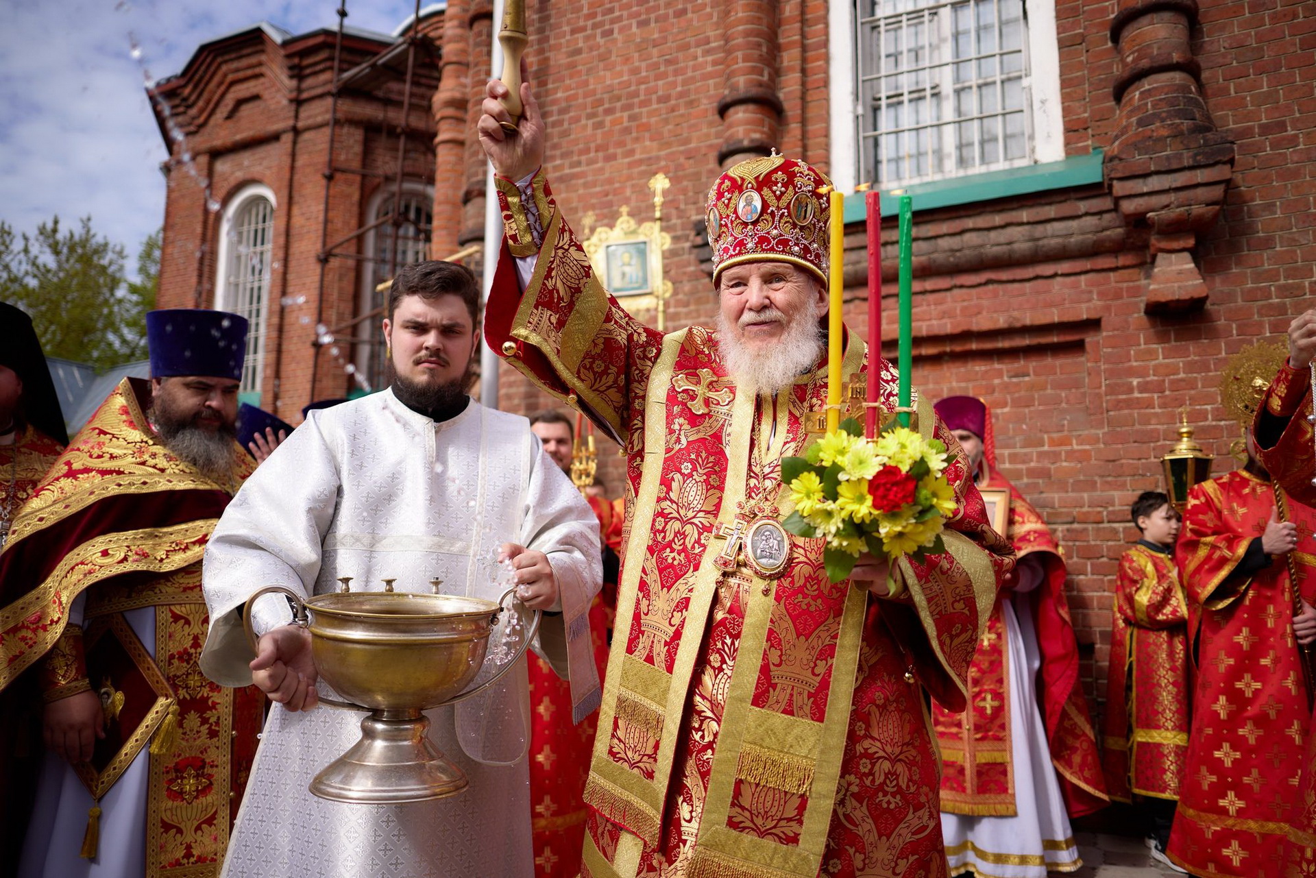 По заамвонной молитве были совершены крестный ход, славление Апостолу и Евангелисту Иоанну Богослову и возглашены уставные многолетия, после чего отец Антоний поблагодарил Владыку Николая за совершённое богослужение и преподнёс ему пасхальное яйцо, выполненное мастерами Дулёвского фарфорового завода.