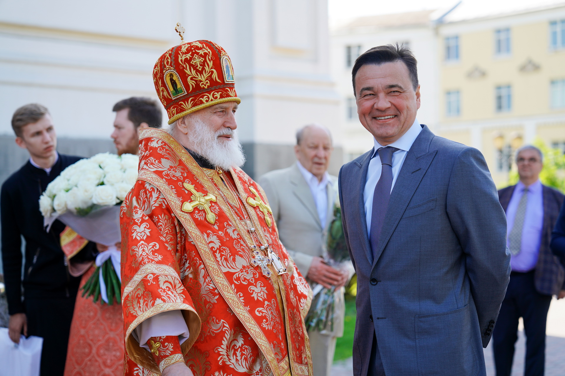 У врат Преображенского собора обители Предстоятеля Русской Православной Церкви встречали: Патриарший наместник Московской митрополии митрополит Крутицкий и Коломенский Павел; губернатор Московской области А.Ю. Воробьев; наместник Николо-Угрешского монастыря, ректор Николо-Угрешской духовной семинарии игумен Мефодий (Зинковский); секретарь Святейшего Патриарха по Московской области протоиерей Дионисий Казанцев; глава городского округа Дзержинский Московской области А.Э. Пак.
