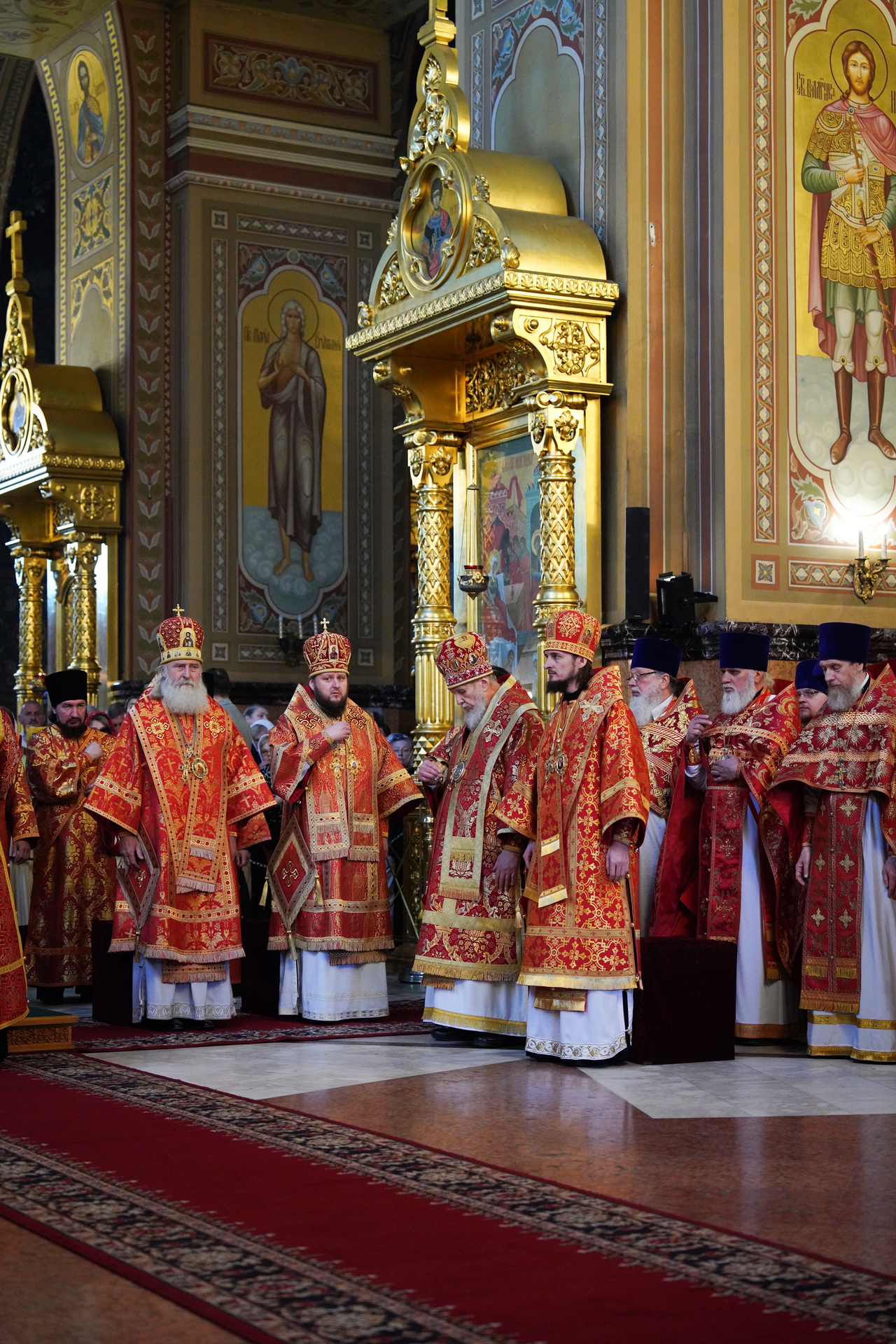 Его Святейшеству сослужили: митрополит Крутицкий и Коломенский Павел; митрополит Каширский Феогност, наместник Донского ставропигиального монастыря, председатель Синодального отдела по монастырям и монашеству; архиепископ Одинцовский и Красногорский Фома, руководитель Административного секретариата Московской Патриархии; архиепископ Люберецкий и Подольский Аксий, секретарь Архиерейского совета Московской митрополии; епископ Серпуховской Роман, наместник Высоцкого ставропигиального монастыря; епископ Балашихинский и Орехово-Зуевский Николай, главный редактор Издательства Московской Патриархии; епископ Сергиево-Посадский и Дмитровский Кирилл, наместник Свято-Троицкой Сергиевой лавры, ректор Московской духовной академии; епископ Раменский Алексий, личный секретарь Святейшего Патриарха Кирилла; игумен Мефодий (Зинковский), наместник Николо-Угрешского монастыря, ректор Николо-Угрешской духовной семинарии; протоиерей Дионисий Казанцев, секретарь Святейшего Патриарха по Московской области, секретарь Одинцовского епархиального управления; протоиерей Димитрий Оловянников, секретарь Сергиево-Посадского епархиального управления, настоятель Владимирского храма г. Мытищи Московской области; иерей Василий Лосев, руководитель Юридической службы Московской митрополии, секретарь епархиального совета Одинцовской епархии; протоиерей Алексий Михаленя, секретарь Балашихинского епархиального управления, настоятель Богородице-Рождественского храма г. Балашихи Московской области; иерей Константин Семенов, секретарь Подольского епархиального управления, настоятель храма в честь иконы Божией Матери «Утоли моя печали» деревни Одинцово городского округа Домодедово; насельники Николо-Угрешской обители в священном сане, духовенство Московской митрополии и г. Москвы.