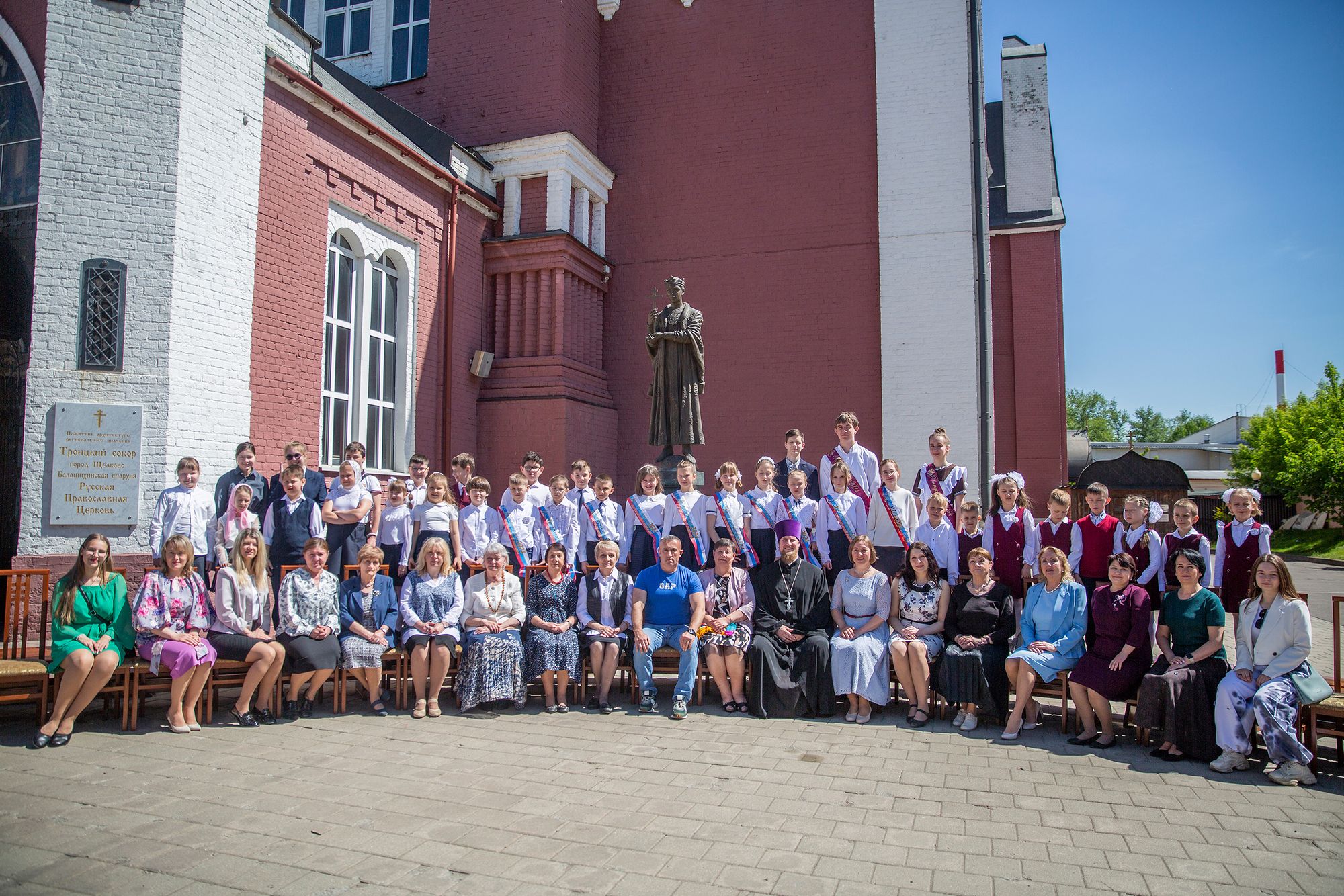 26 мая в воскресной школе имени царевича Алексия при Троицком соборе города Щёлково ответственный в Щёлковском благочинии по вопросам семьи, защиты материнства и детства священник Димитрий Медведев совершил благодарственный молебен по случаю окончания учебного года, после чего учащиеся возложили цветы к памятнику царевича Алексия на территории собора. В конференц-зале директор школы Анна Александровна Медведева вместе с преподавателями поздравили детей с окончанием учебного года, поблагодарили родителей за плодотворное сотрудничество. Выпускники были награждены грамотами благочиния за отличную учёбу, а родители воспитанников – за достойное воспитание детей, активное участие в жизни воскресной школы и в связи с Годом семьи.
