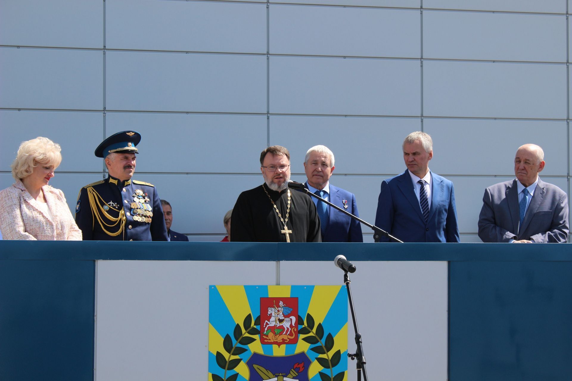 В школе №12 города Щёлково выпускников поздравил настоятель храма страстотерпца царя Николая города Щёлково священник Максим Алифанов.