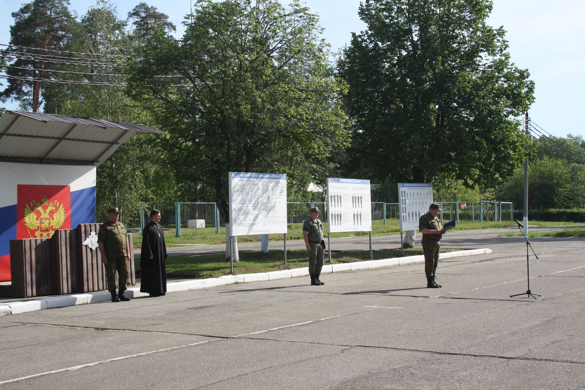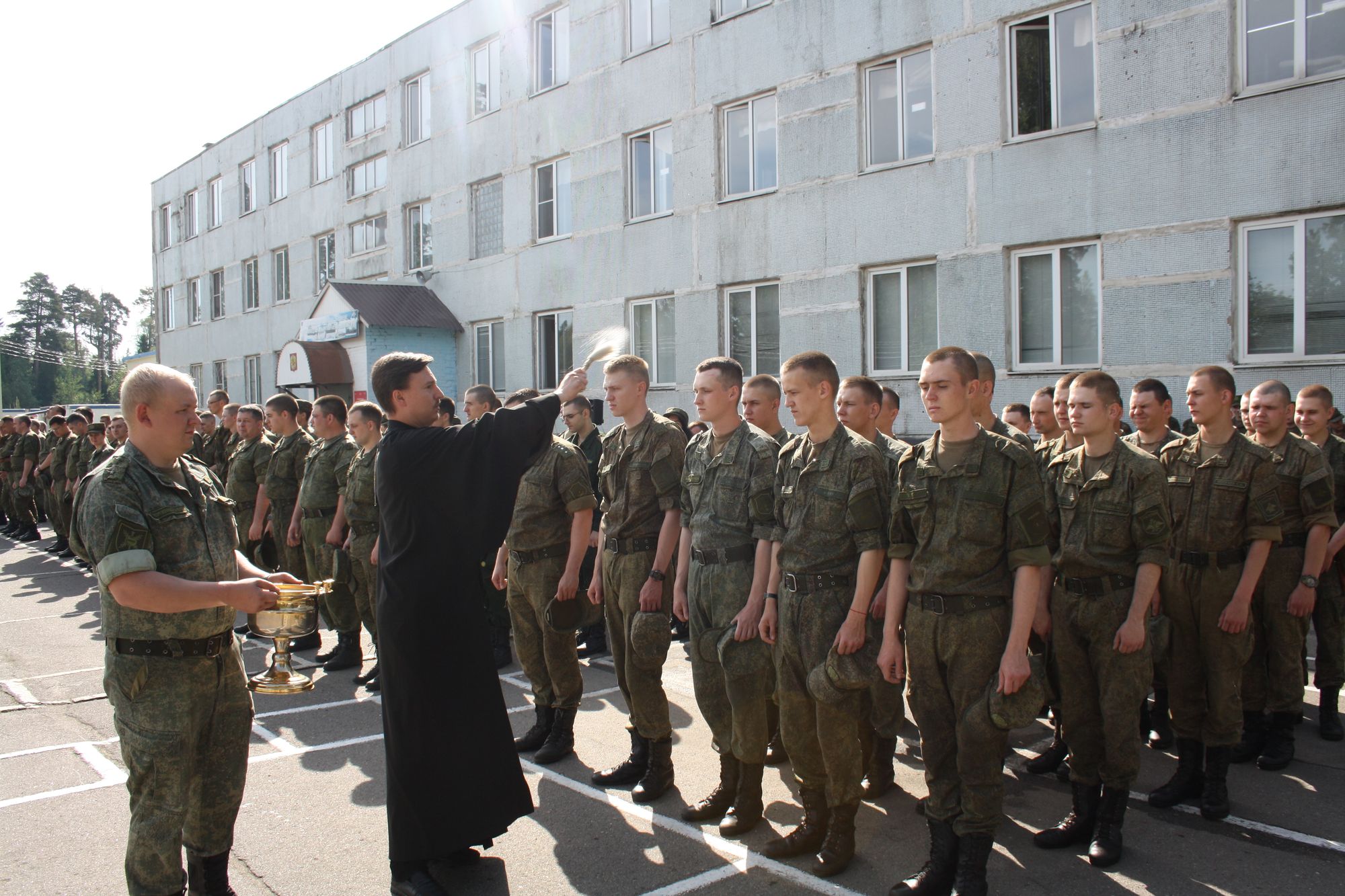 По окончании богослужения на плацу воинской части, на территории которой находится храм, было проведено торжественное построение военнослужащих.