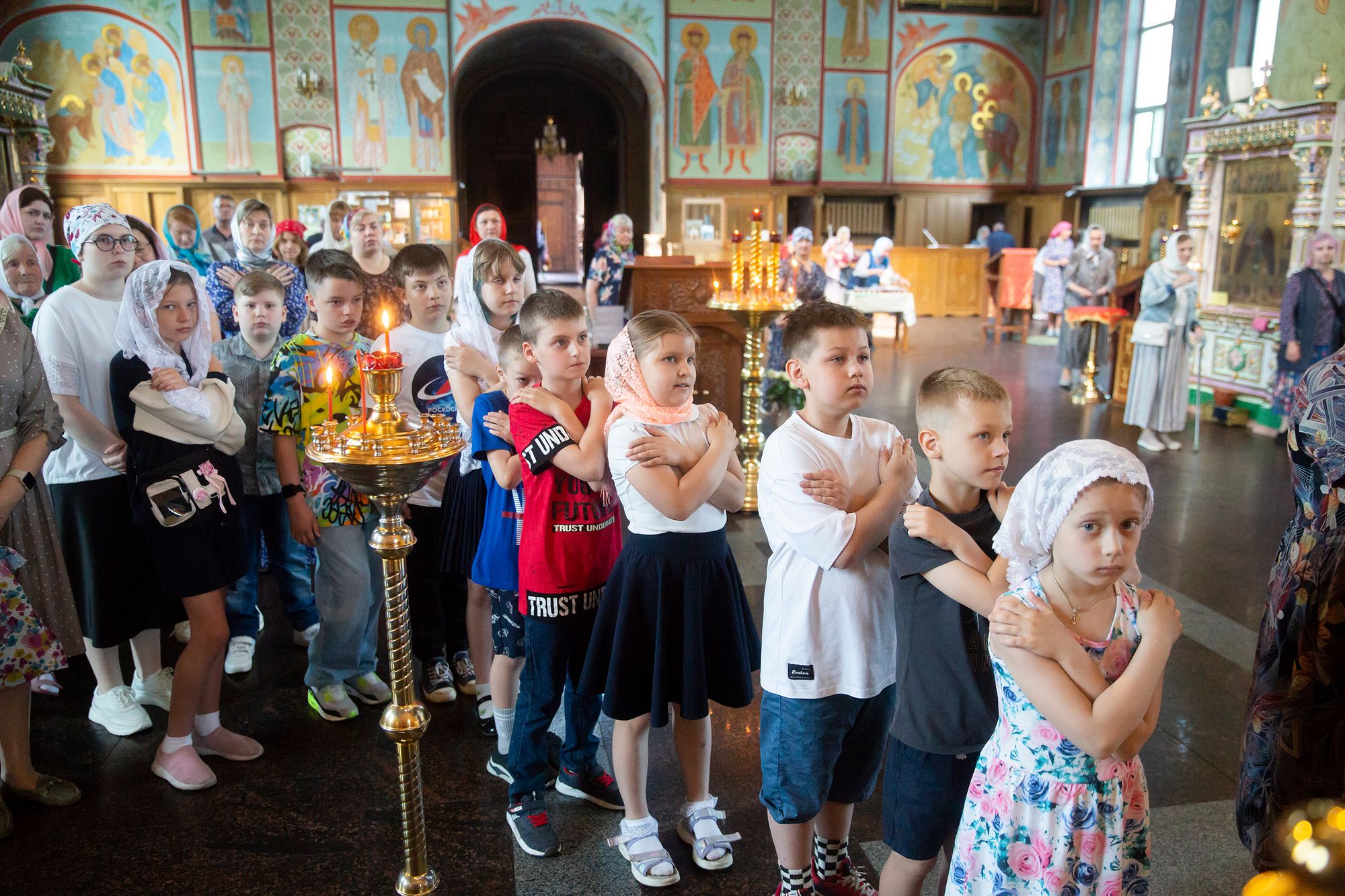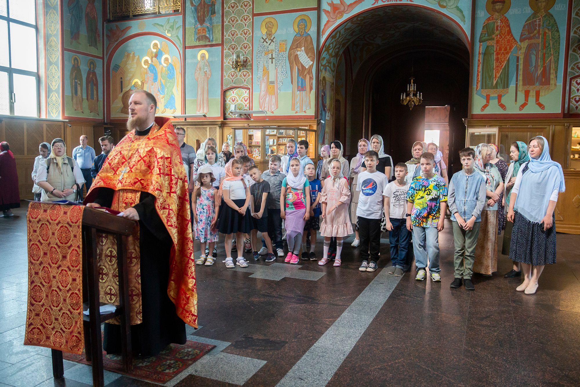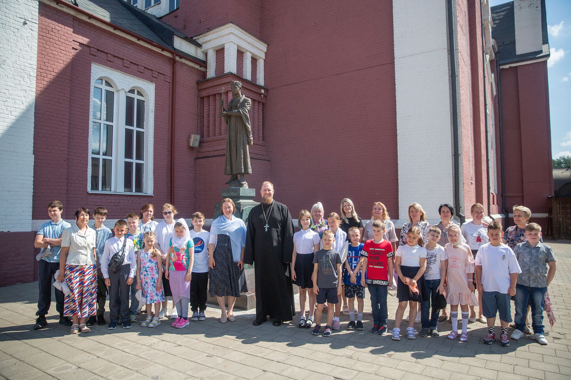 Утром гимназисты с учителями и родителями молились в Троицком соборе за Божественной литургией, многие причастились Святых Христовых Таин.