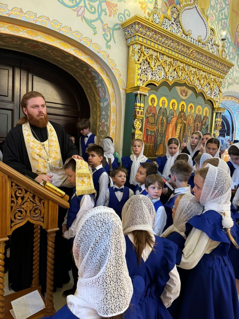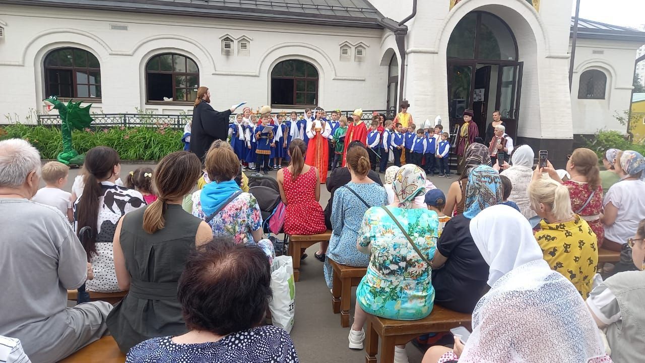 Дети пели за Божественной литургией, причастились Святых Христовых Таин. После завершения богослужения юные хористы показали сценку «Повесть о Петре и Февронии», исполнили христианские и народные песни.