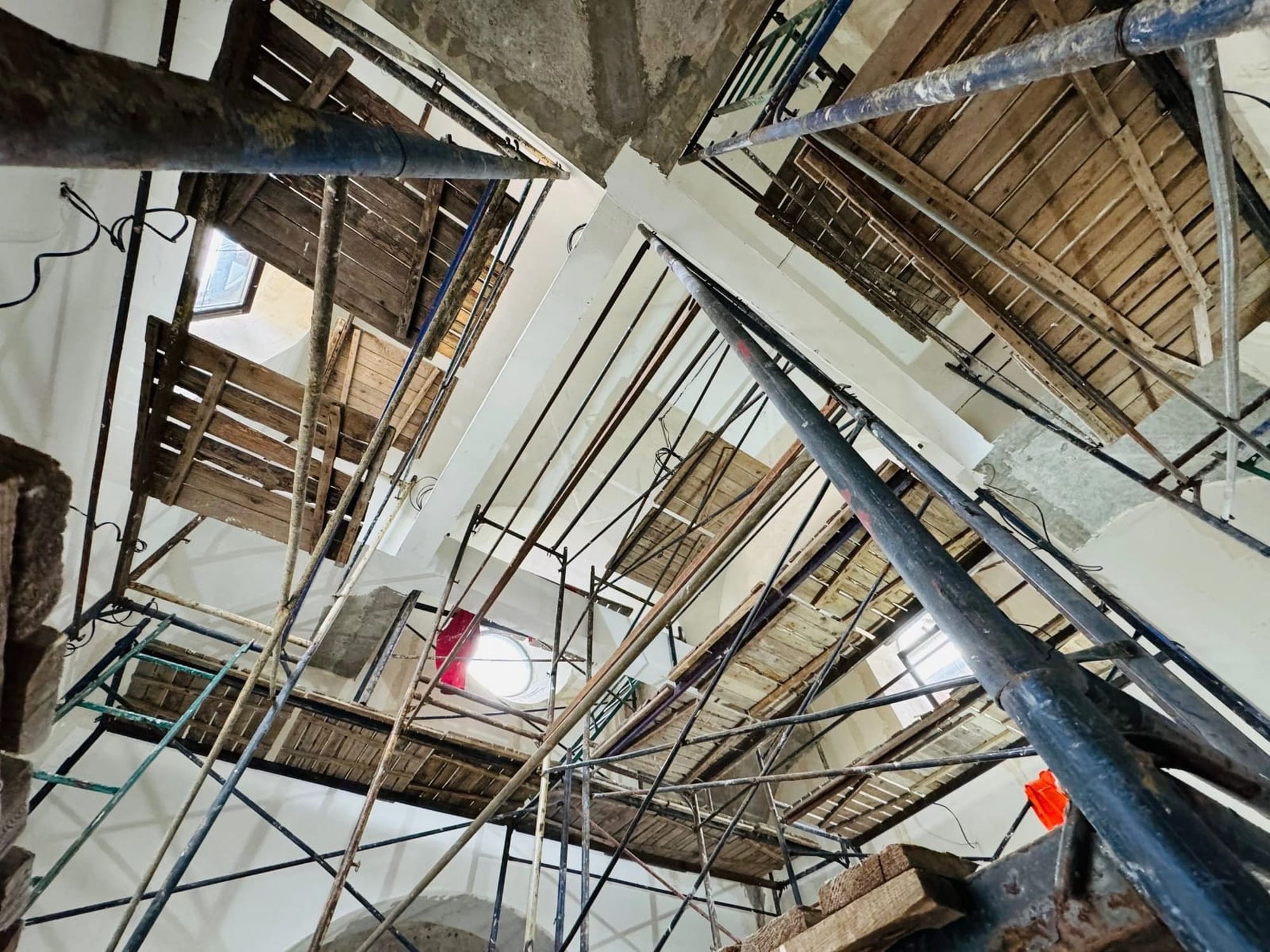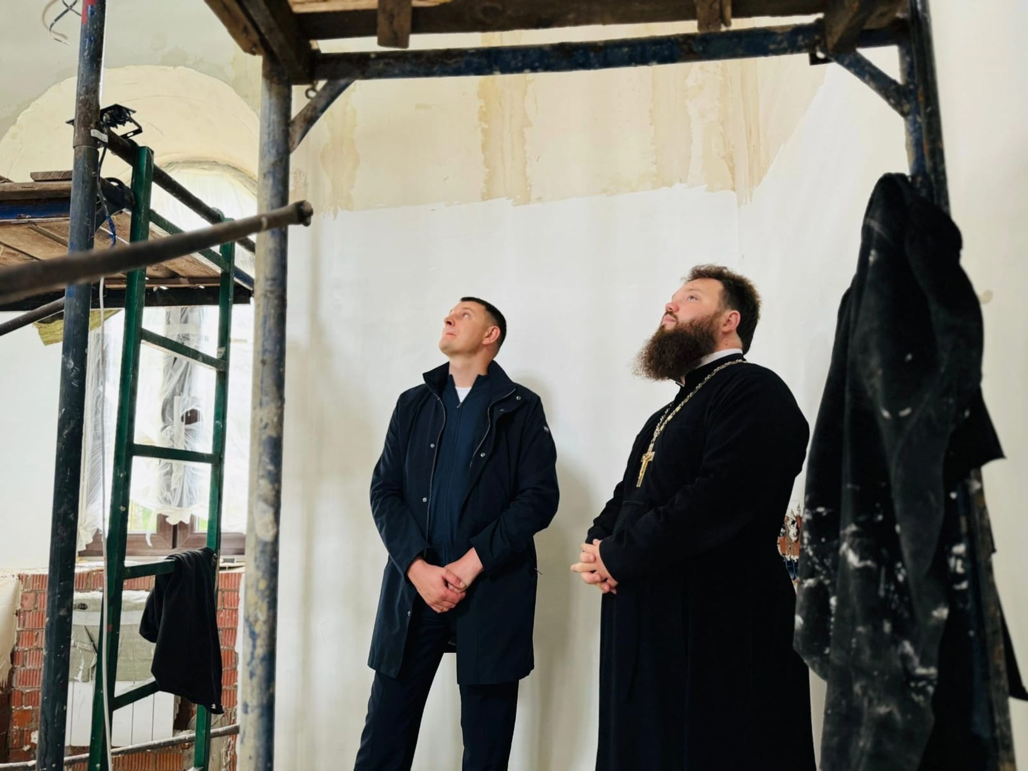 Отец Александр и Денис Олегович ознакомились с текущим ходом строительных работ.