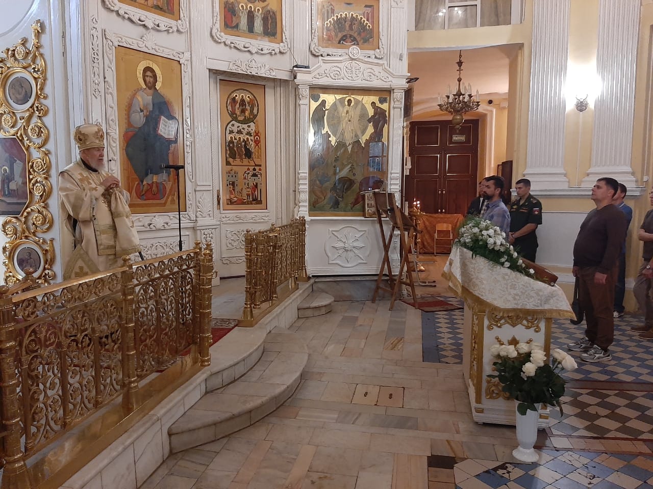 Его Преосвященству сослужили клирики собора.