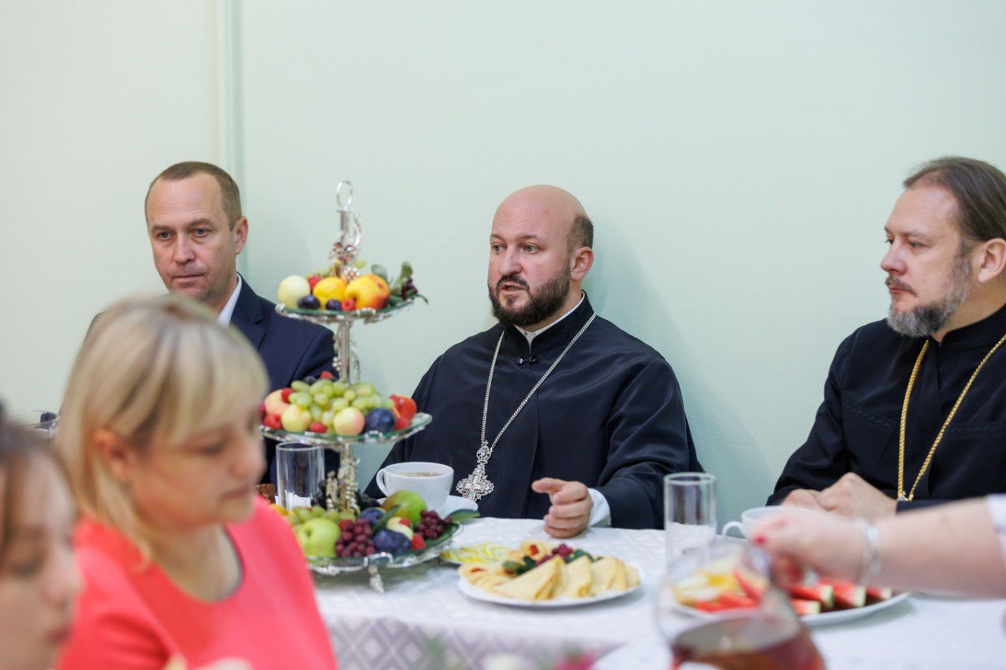 Протоиерей Сергий Якимов передал всем участникам встречи благословение митрополита Крутицкого и Коломенского Павла и вручил памятные подарки.