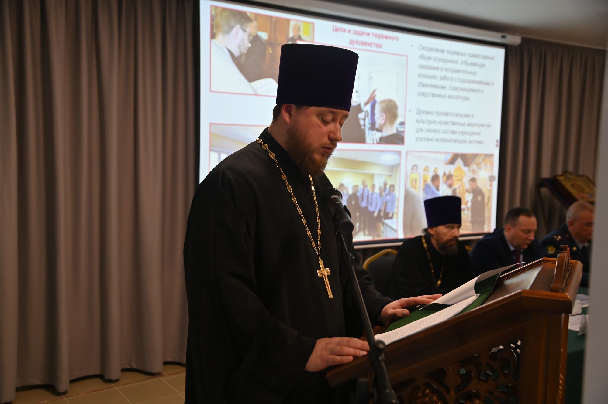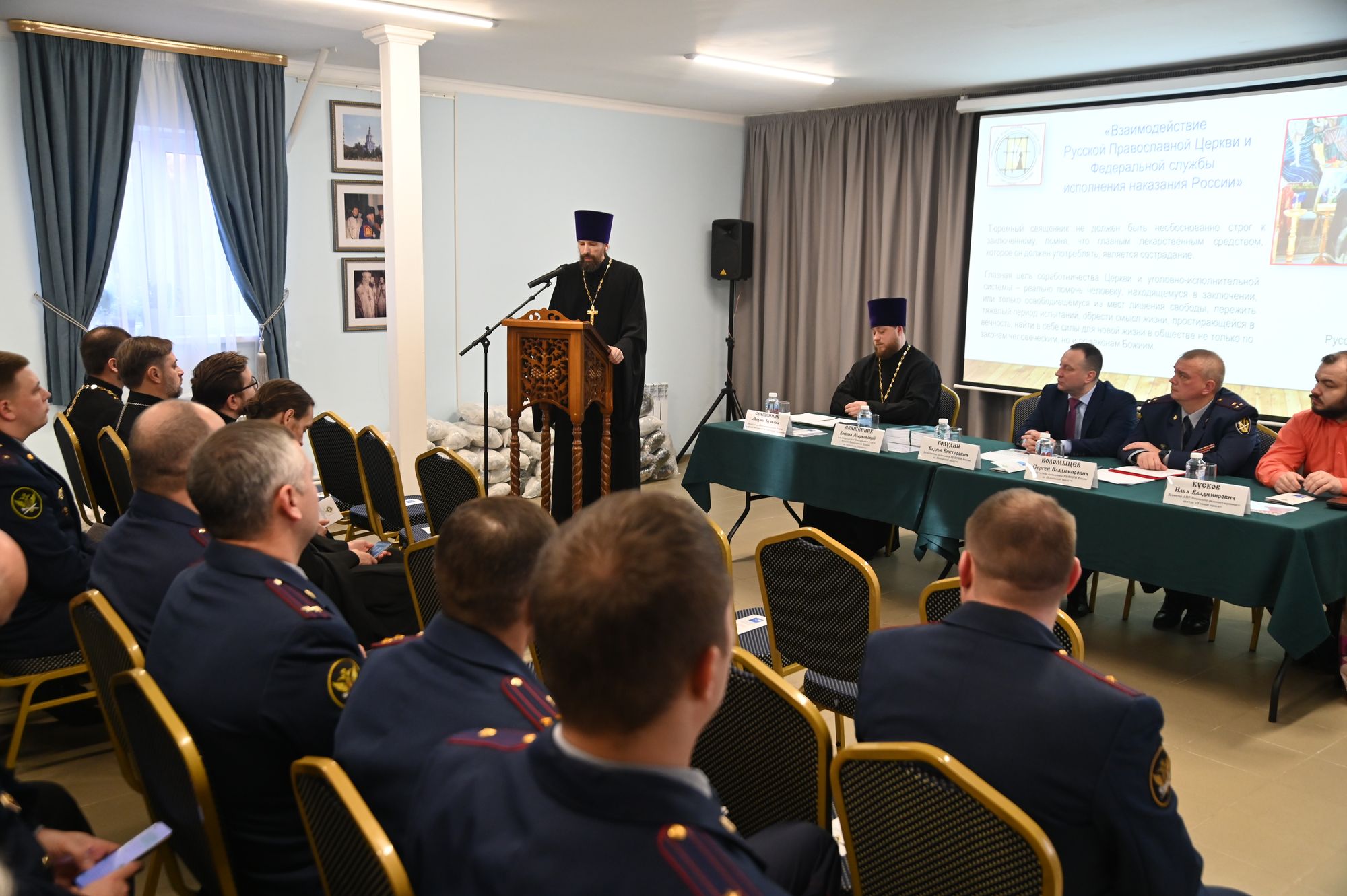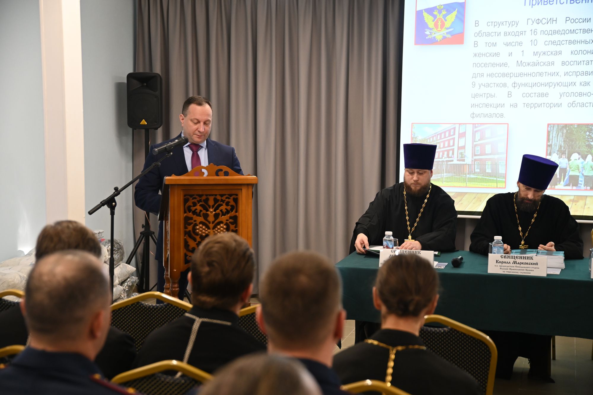 К участникам мероприятия обратились исполняющий обязанности председателя Синодального отдела Русской Православной Церкви по тюремному служению священник Кирилл Марковский и председатель Межъепархиального отдела по тюремному служению, помощник начальника ГУФСИН священник Михаил Кузёмка.