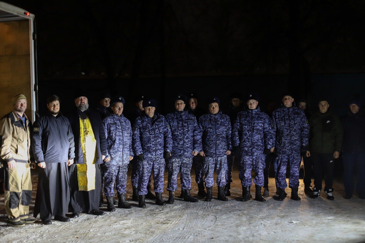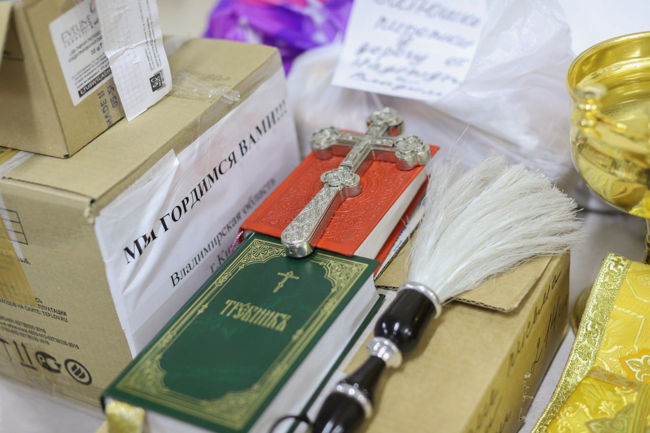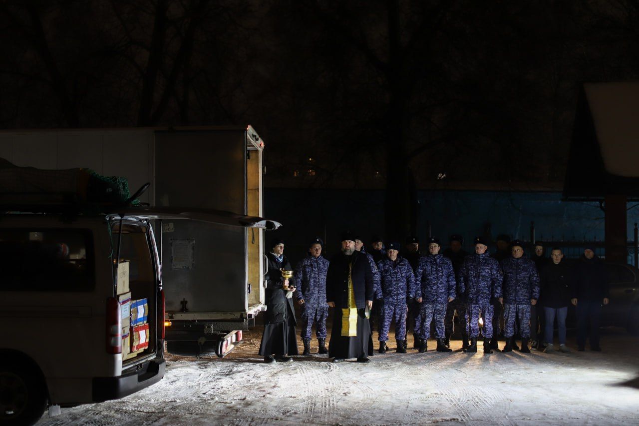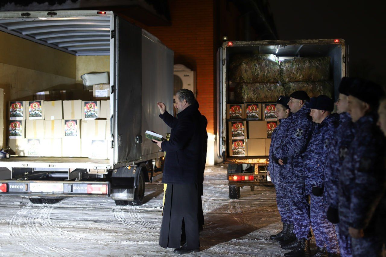 Перед отправкой груза председатель Межъепархиального отдела Московской митрополии по взаимодействию с Вооруженными силами, правоохранительными органами и казачеством, благочинный Богородского округа протоиерей Марк Ермолаев совершил молебен.