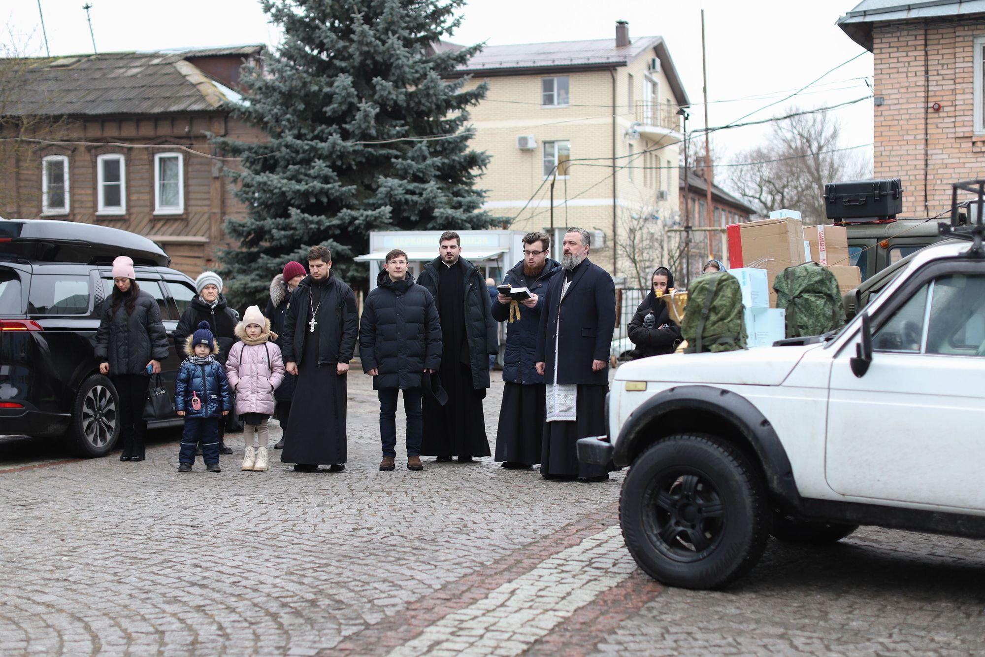 19 января освящение гуманитарной помощи совершил благочинный Богородского округа протоиерей Марк Ермолаев.