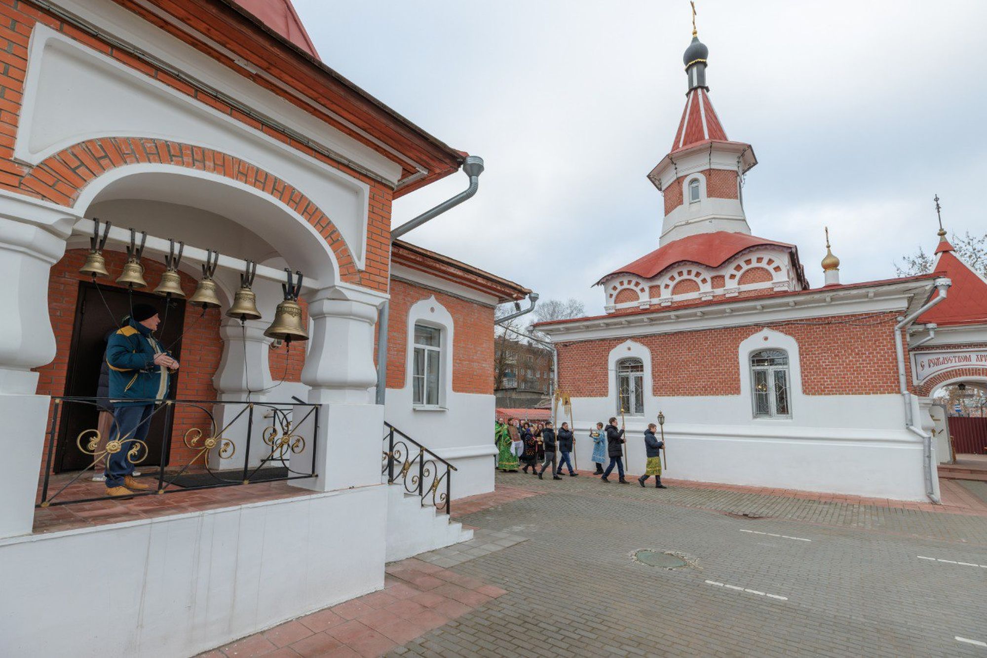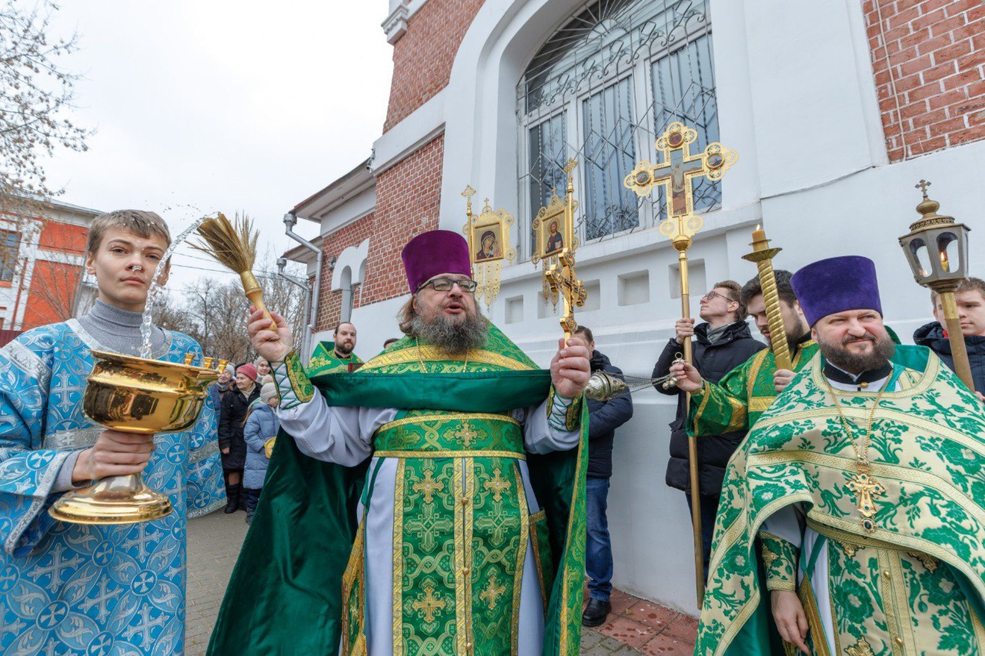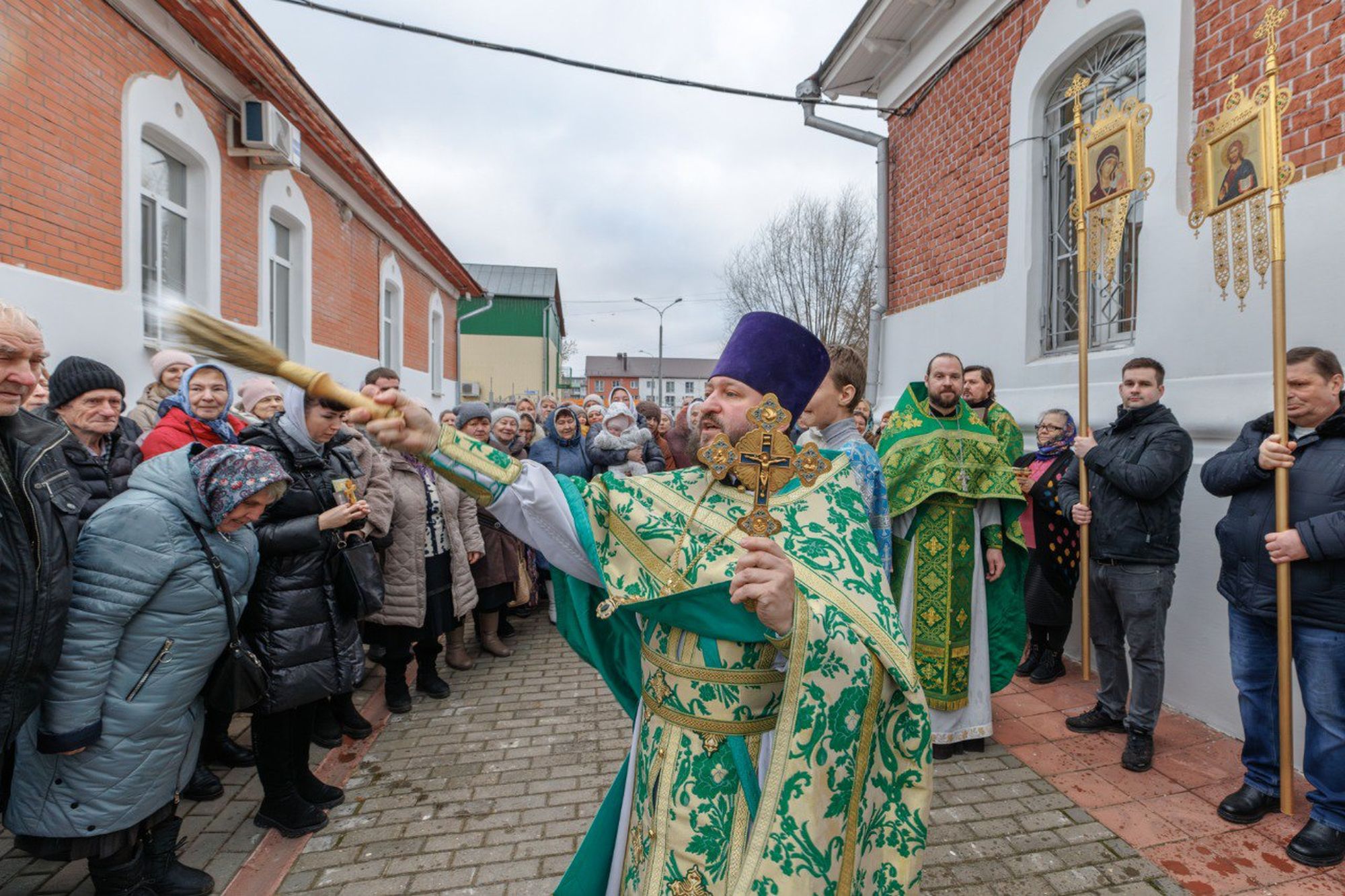 По окончании Литургии был совершён уставной крестный ход, после чего отец Андрей поздравил присутствующих с праздником и обратился к молящимся с пастырским словом.