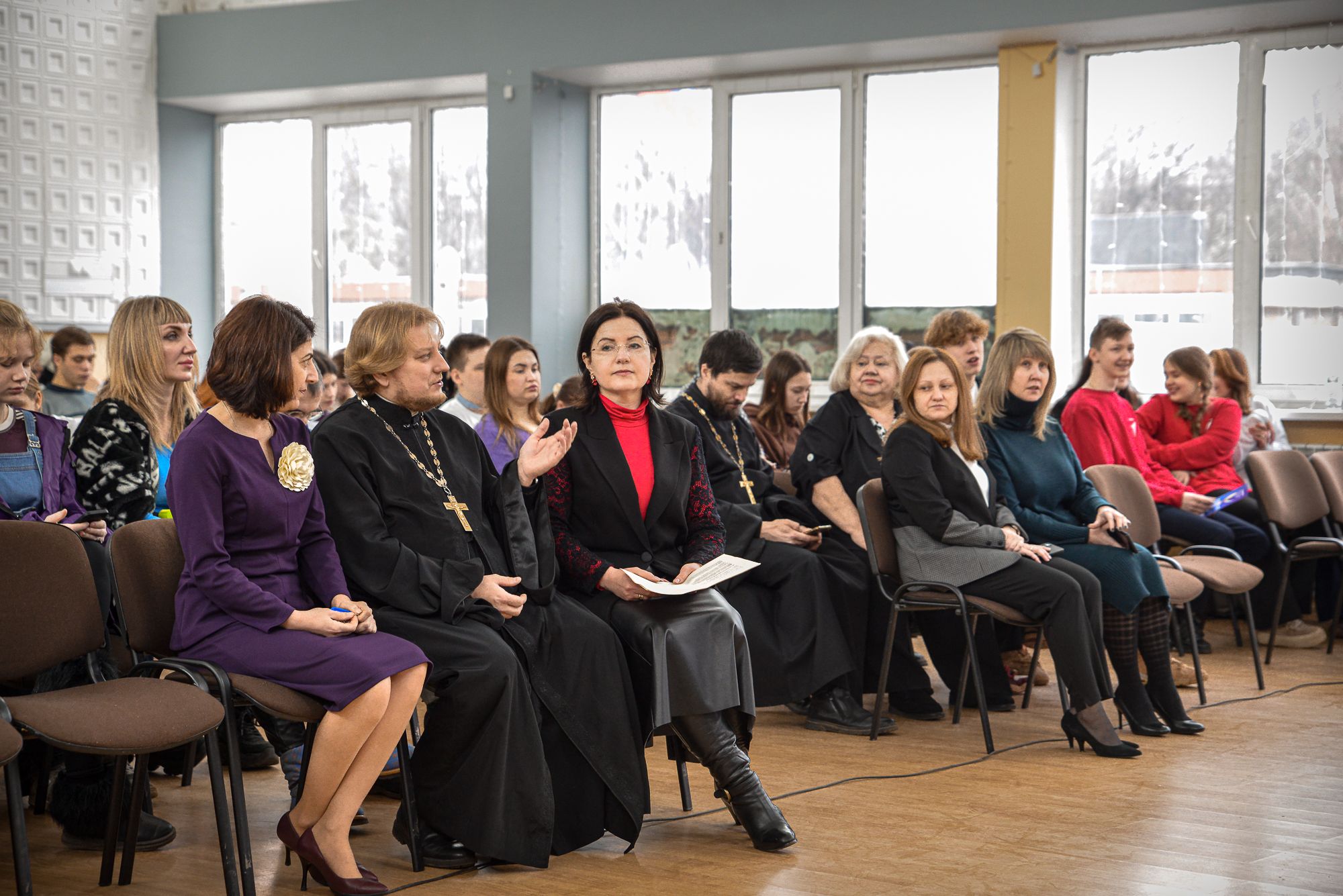 В фойе учебного учреждения, где проходила регистрация участников, под звуки живой музыки гостей встречали волонтёры и директор колледжа Ф. В. Бубич. Для священнослужителей и прибывших гостей Флора Владимировна провела экскурсию по корпусам Щёлковского колледжа – одного из ведущих средних специальных учебных заведений России.