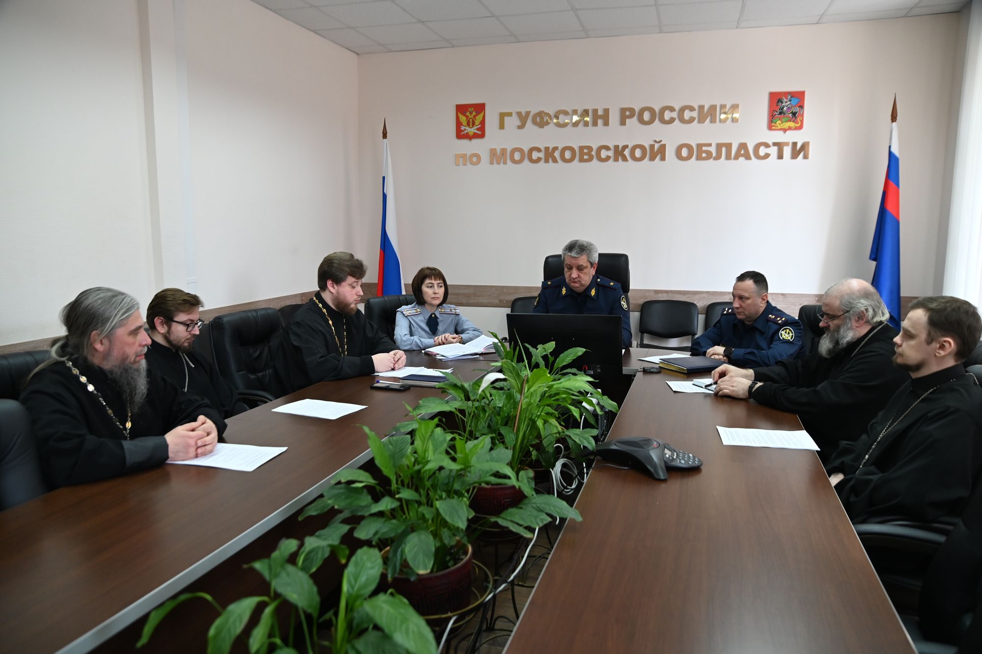 26 февраля в ГУФСИН России по Московской области состоялось собрание Межъепархиального отдела по тюремному служению Московской митрополии. В его работе приняли участие начальник ГУФСИН России по Московской области генерал-майор внутренней службы Александр Ветров, его заместители полковник внутренней службы Вадим Голудин и полковник внутренней службы Лидия Скворцова, председатель Межъепархиального отдела по тюремному служению священник Михаил Кузёмка, председатели отделов по тюремному служению епархий, входящих в состав Московской митрополии.