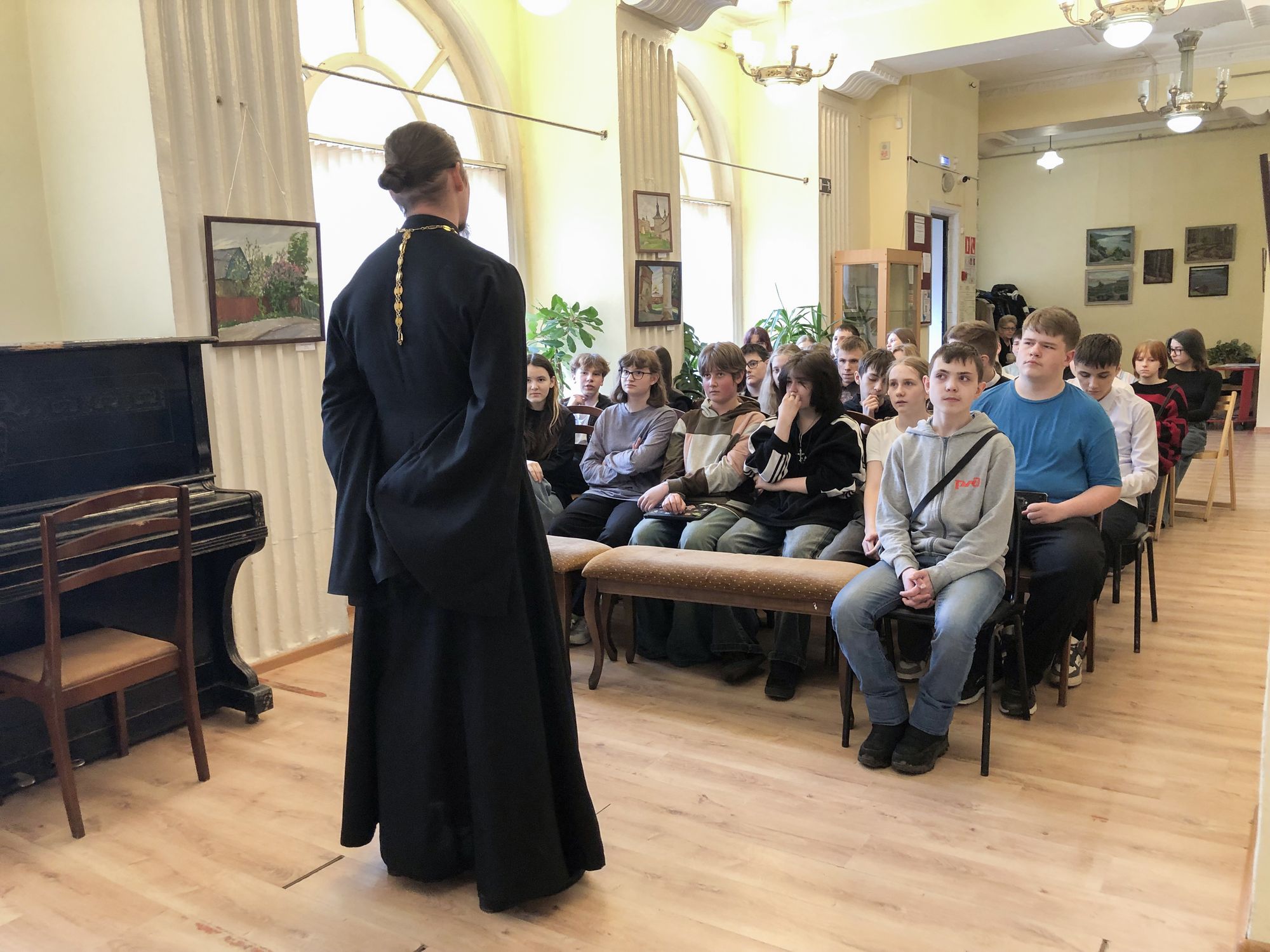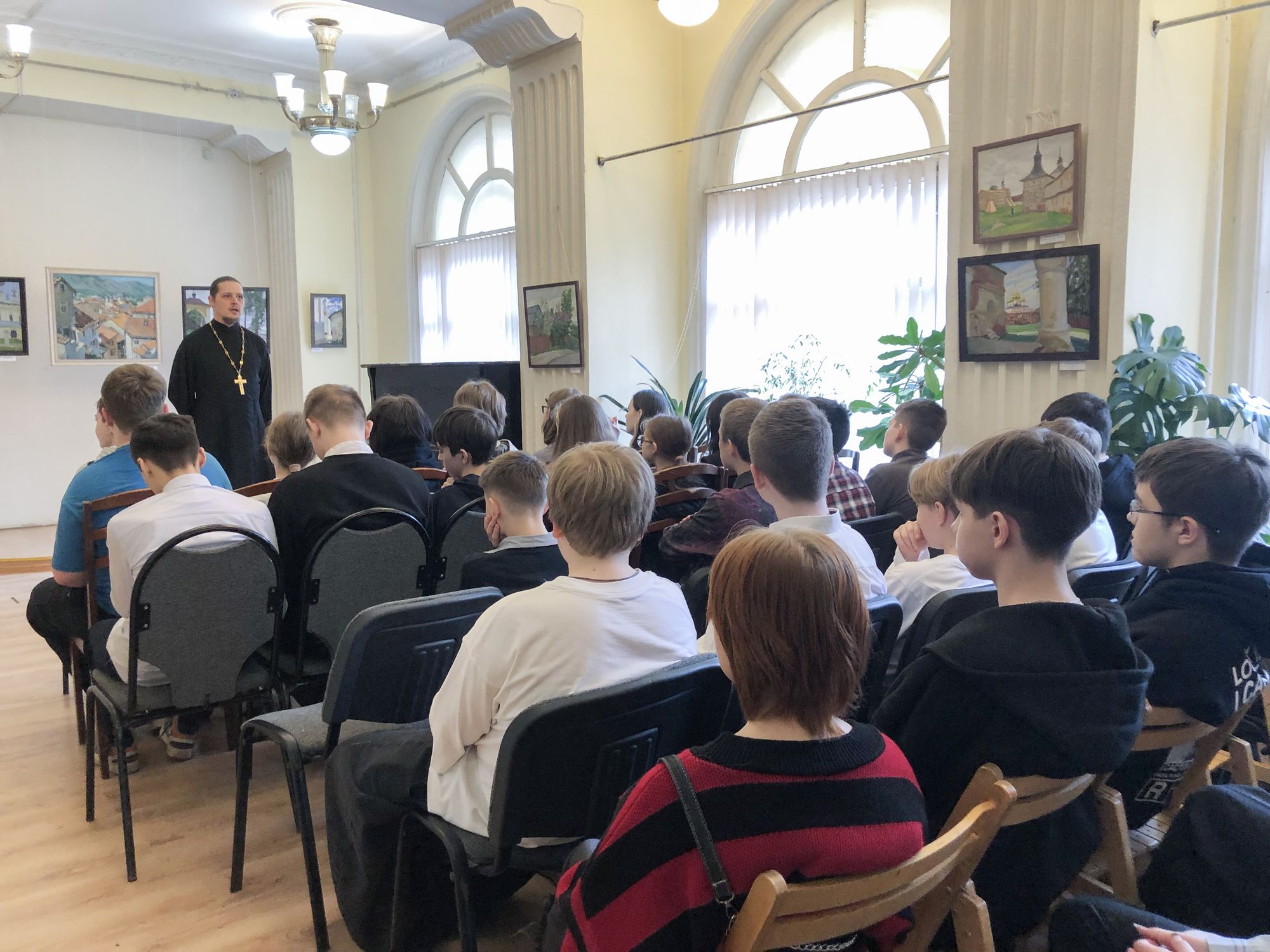 28 марта в культурном центре города Фрязино клирик Державного храма наукограда священник Владимир Тарасюк провёл духовную беседу с семиклассниками городского Лицея на тему «Священство как служение».
