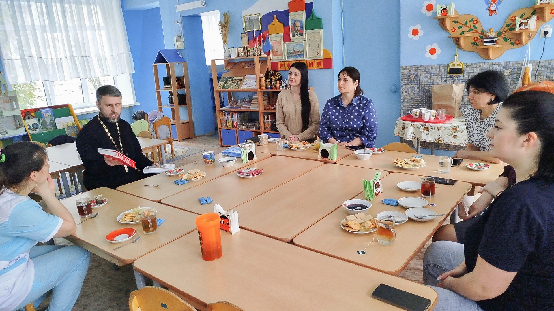 28 марта, в рамках долгосрочного проекта «100 вопросов батюшке», настоятель храма иконы Божией Матери «Спорительница хлебов» города Щёлково священник Александр Мороков встретился с заведующей и воспитателями детского сада «Радость» города Щёлково, провёл с ними духовную беседу и ответил на вопросы.