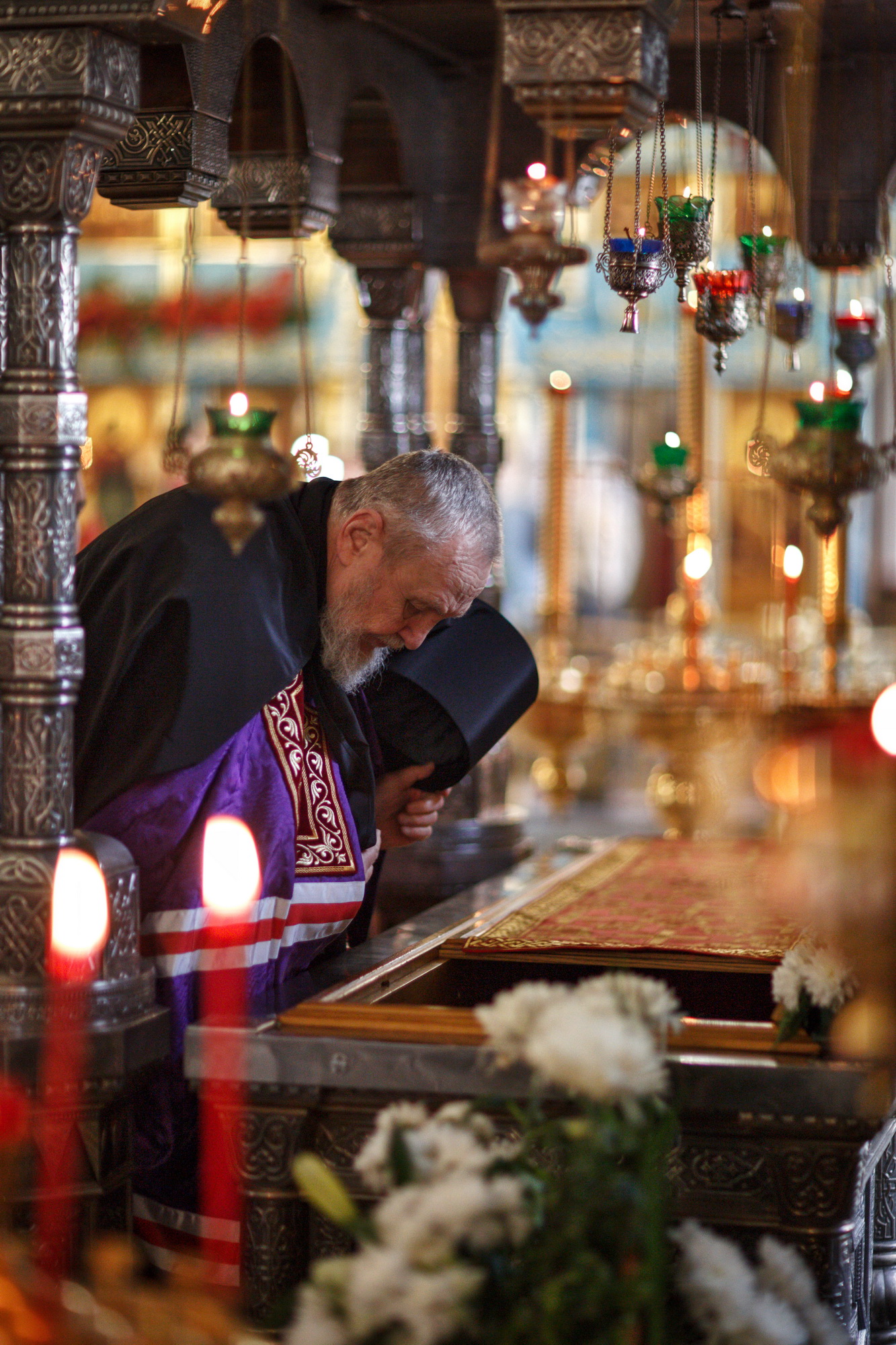 Перед началом Литургии Владыка Николай поклонился раке с мощами святого праведного Василия Павлово-Посадского.