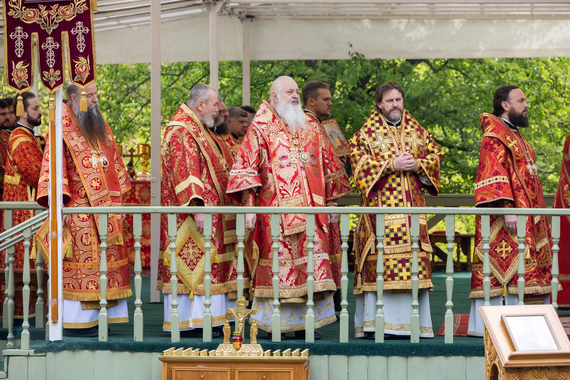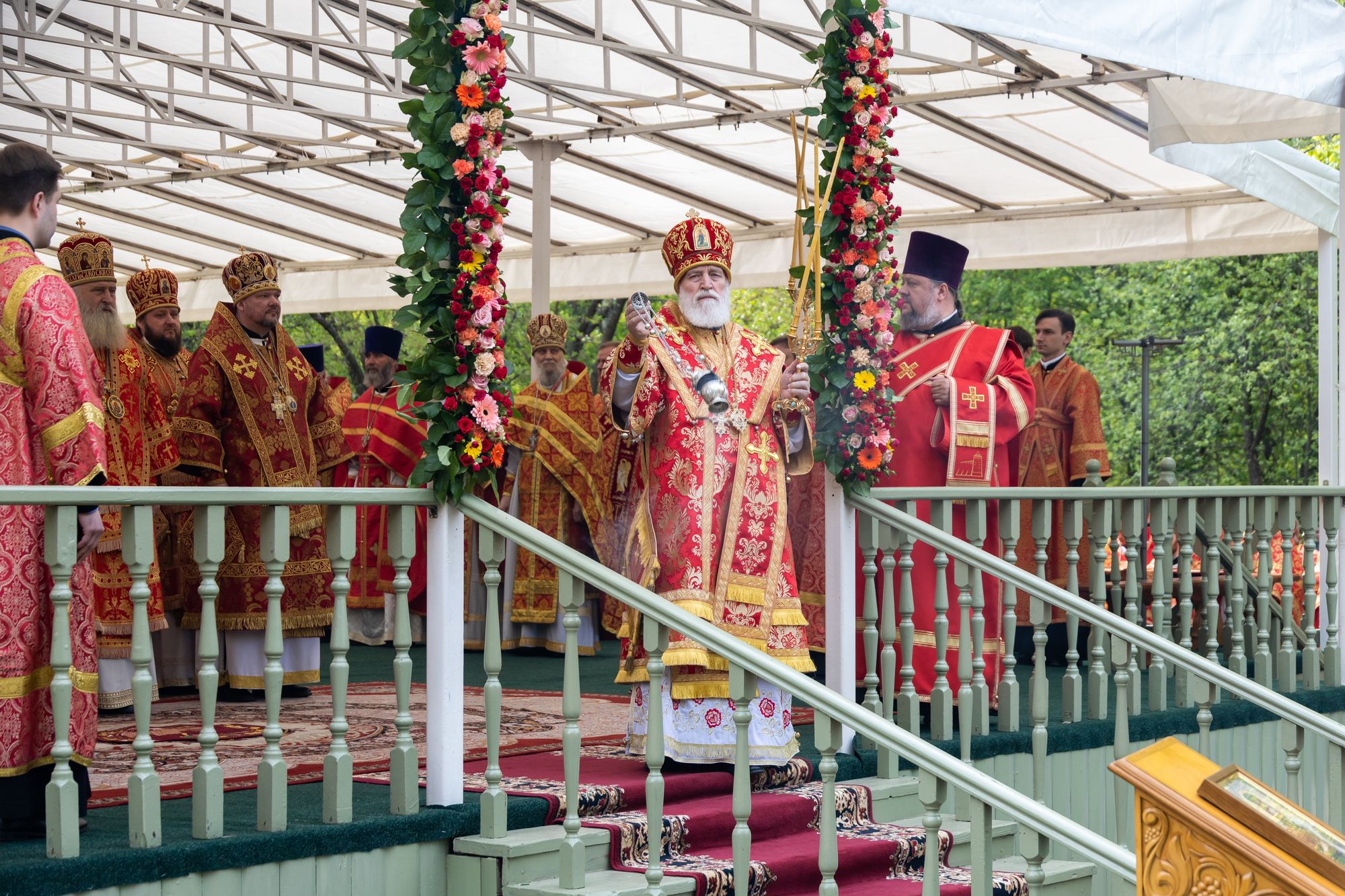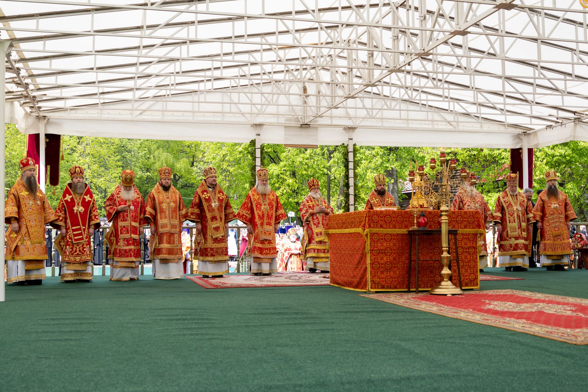Его Высокопреосвященству сослужили: митрополит Каширский Феогност; митрополит Звенигородский Арсений; митрополит Иоанн (Рощин); архиепископ Одинцовский и Красногорский Фома; архиепископ Подольский и Люберецкий Аксий; епископ Видновский Тихон; епископ Серпуховской Роман; епископ Балашихинский и Орехово-Зуевский Николай; епископ Сергиево-Посадский и Дмитровский Кирилл; епископ Егорьевский Мефодий; секретарь Патриарха Московского и всея Руси по городу Москве протопресвитер Владимир Диваков; настоятель храма новомучеников и исповедников Российских в Бутово протоиерей Кирилл Каледа с собором духовенства города Москвы и Московской области.
