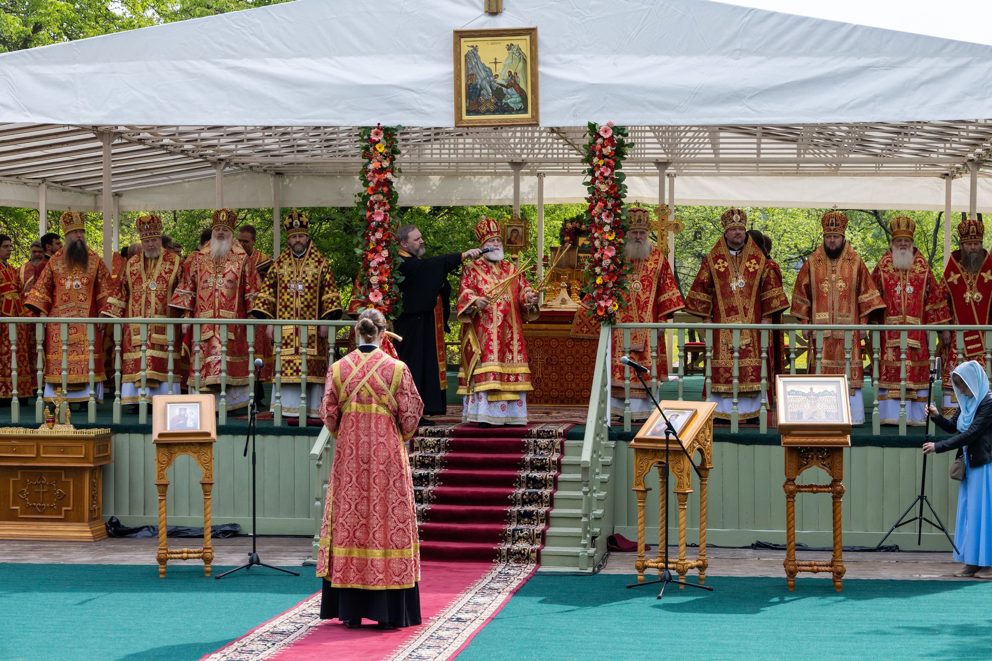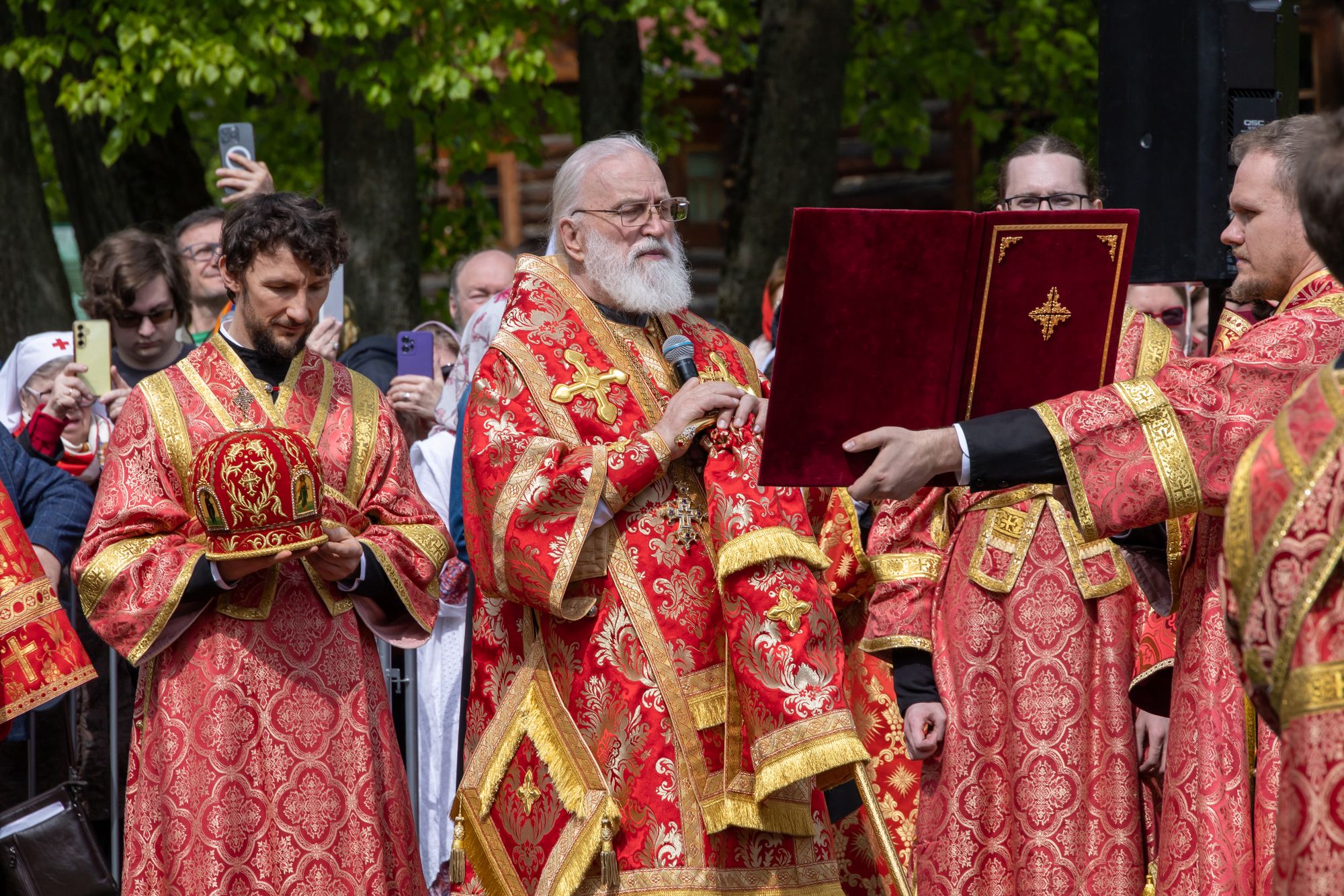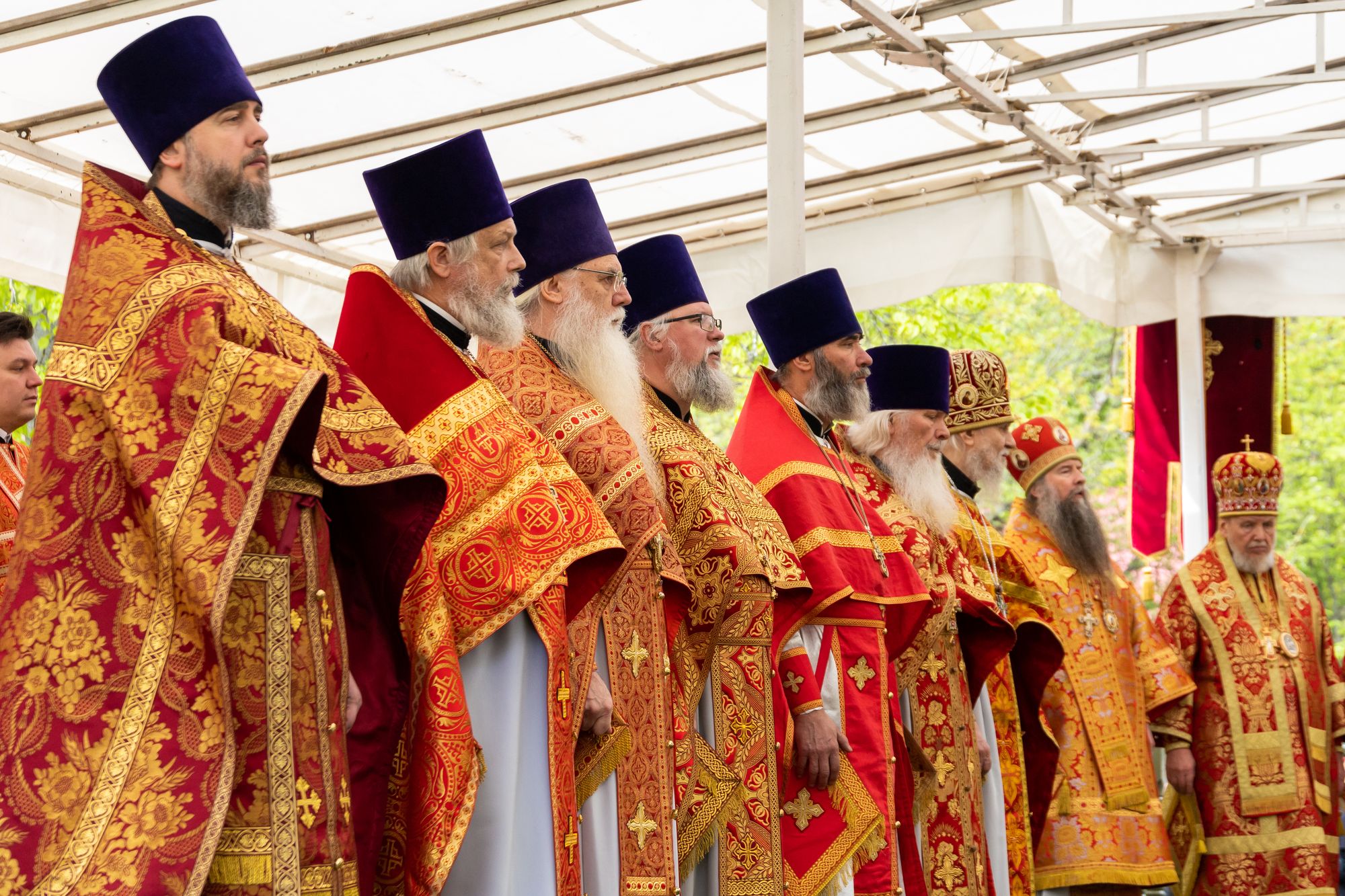 Его Высокопреосвященству сослужили: митрополит Каширский Феогност; митрополит Звенигородский Арсений; митрополит Иоанн (Рощин); архиепископ Одинцовский и Красногорский Фома; архиепископ Подольский и Люберецкий Аксий; епископ Видновский Тихон; епископ Серпуховской Роман; епископ Балашихинский и Орехово-Зуевский Николай; епископ Сергиево-Посадский и Дмитровский Кирилл; епископ Егорьевский Мефодий; секретарь Патриарха Московского и всея Руси по городу Москве протопресвитер Владимир Диваков; настоятель храма новомучеников и исповедников Российских в Бутово протоиерей Кирилл Каледа с собором духовенства города Москвы и Московской области.