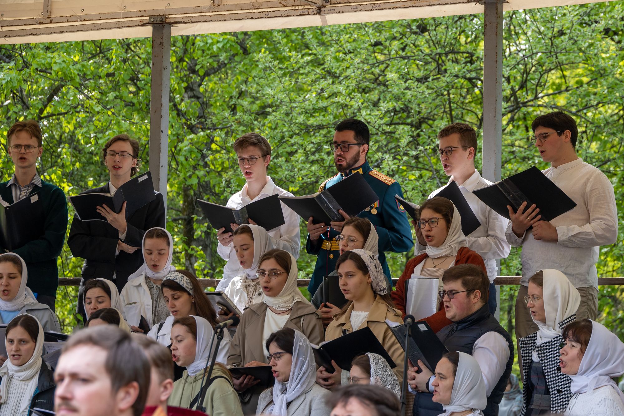 Богослужебные песнопения исполнил хор Православного Свято-Тихоновского гуманитарного университета под управлением Е.В. Пономаренко.