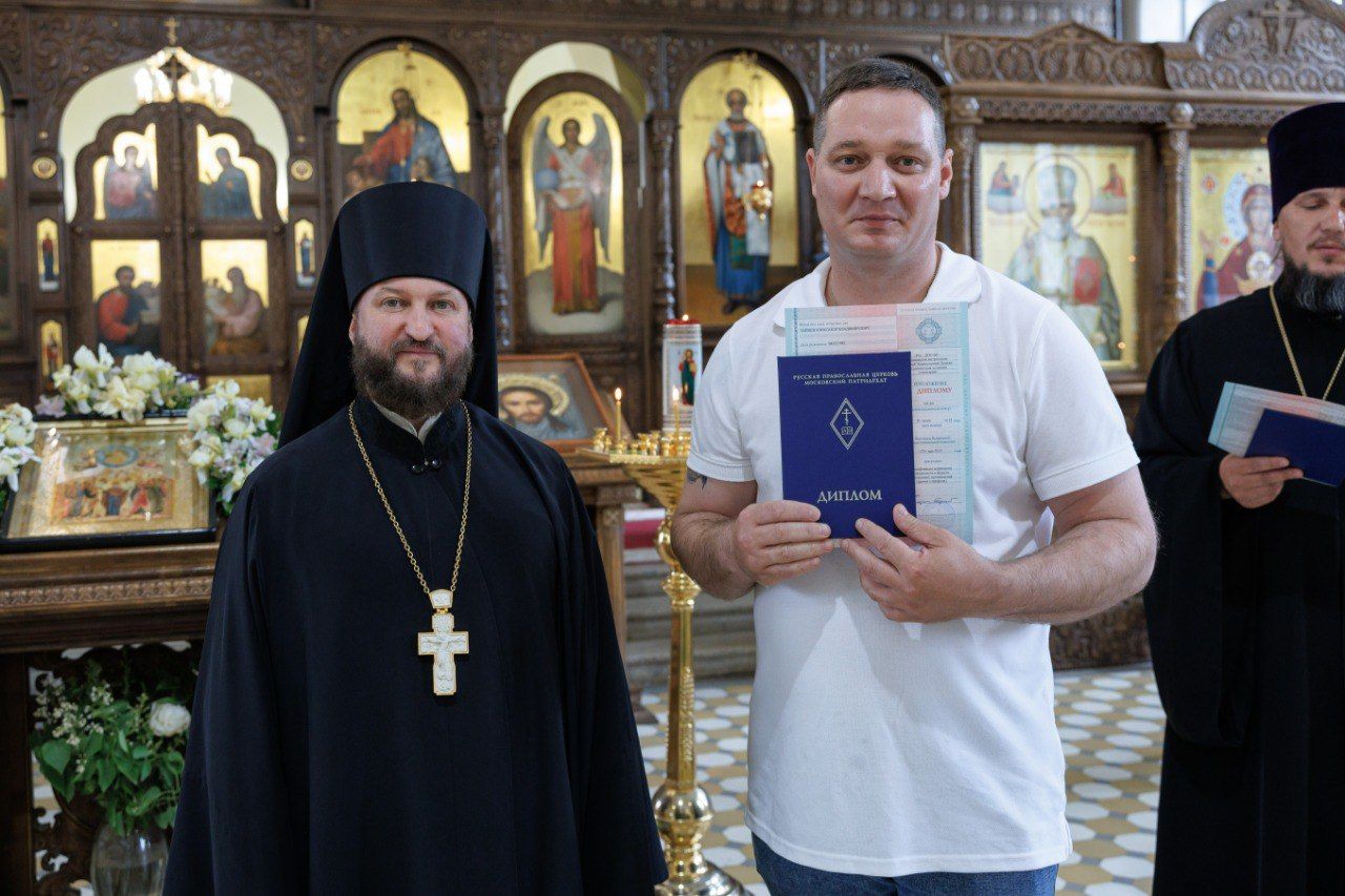 По окончании молебна выпускникам МКК были вручены дипломы о присвоении квалификации по дополнительной образовательной программе «Подготовка специалиста в сфере приходского просвещения (единого профиля)». Выпускники ББК получили свидетельства об окончании курсов.
